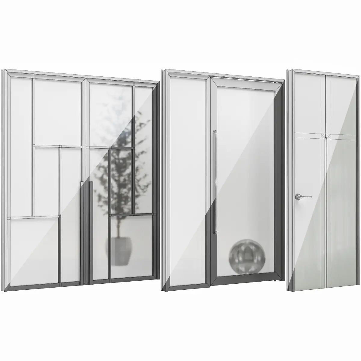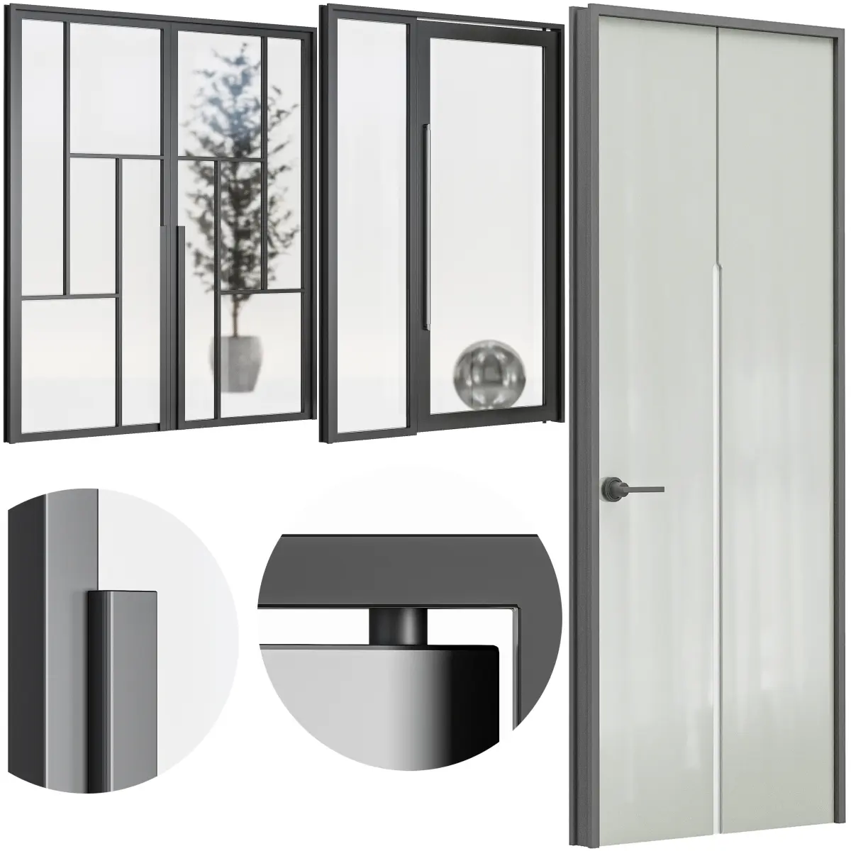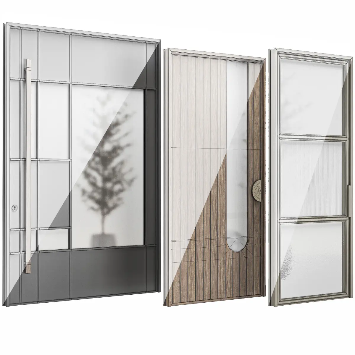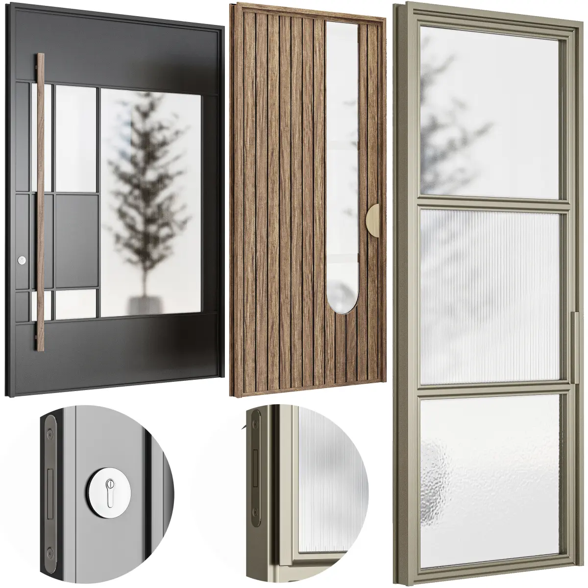 Set of six modern doors realistic for interiors and exteriors. The native file has been 3ds max 2018 ready to use with vray or conora render.
