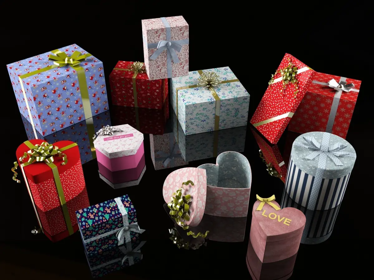 Greetings, to your attention set of 13 dizzy and deadpan collection gifts, boxis for your scenes. The 3D models was created on the basis of real drawings and in real dimensions, and in real units of measurement, height is 400mm(biggest), is high-quality detailed model detailed enough for close-up renders. The model was created in the program 3ds Max 2019, retained in the 2016 version. Renders made in a studio environment v-ray (studio environment not included) Textures and materials are included. The following formats are below: