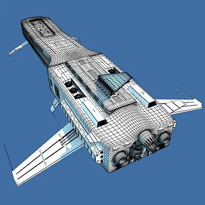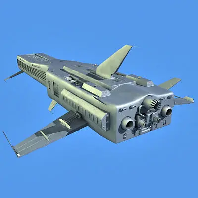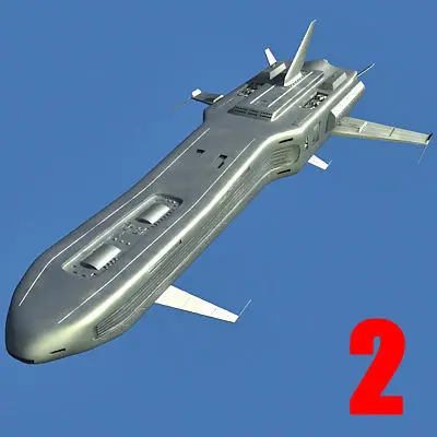 Second spaceship:Polygons: 97015Vertices: 91631A spaceship has materials.3d studio Max version is setup with V-Ray.