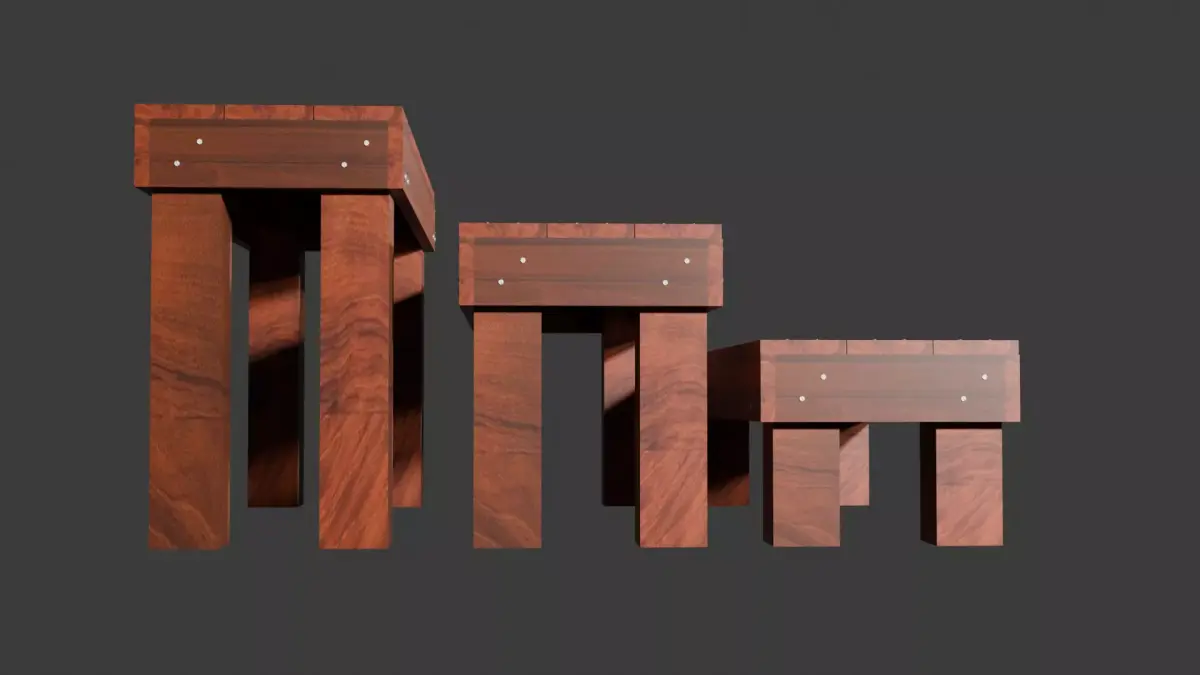 A set of three wooden plant stand benches designed at varying heights for flexible display arrangements. Each bench features a sturdy frame with realistic bolts, screws, and joinery details for added authenticity. The simple rectangular tops provide ample space for plants, décor, or small storage items, making the set ideal for indoor or patio use. The models are cleanly built and optimized for easy placement in scenes or renders. Offered as a free asset for personal or commercial use — perfect for adding a natural, handcrafted touch to interior or garden visualizations.Be sure to check out my other free and premium décor models.