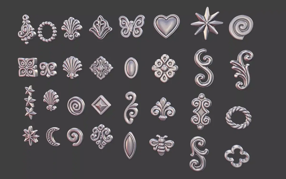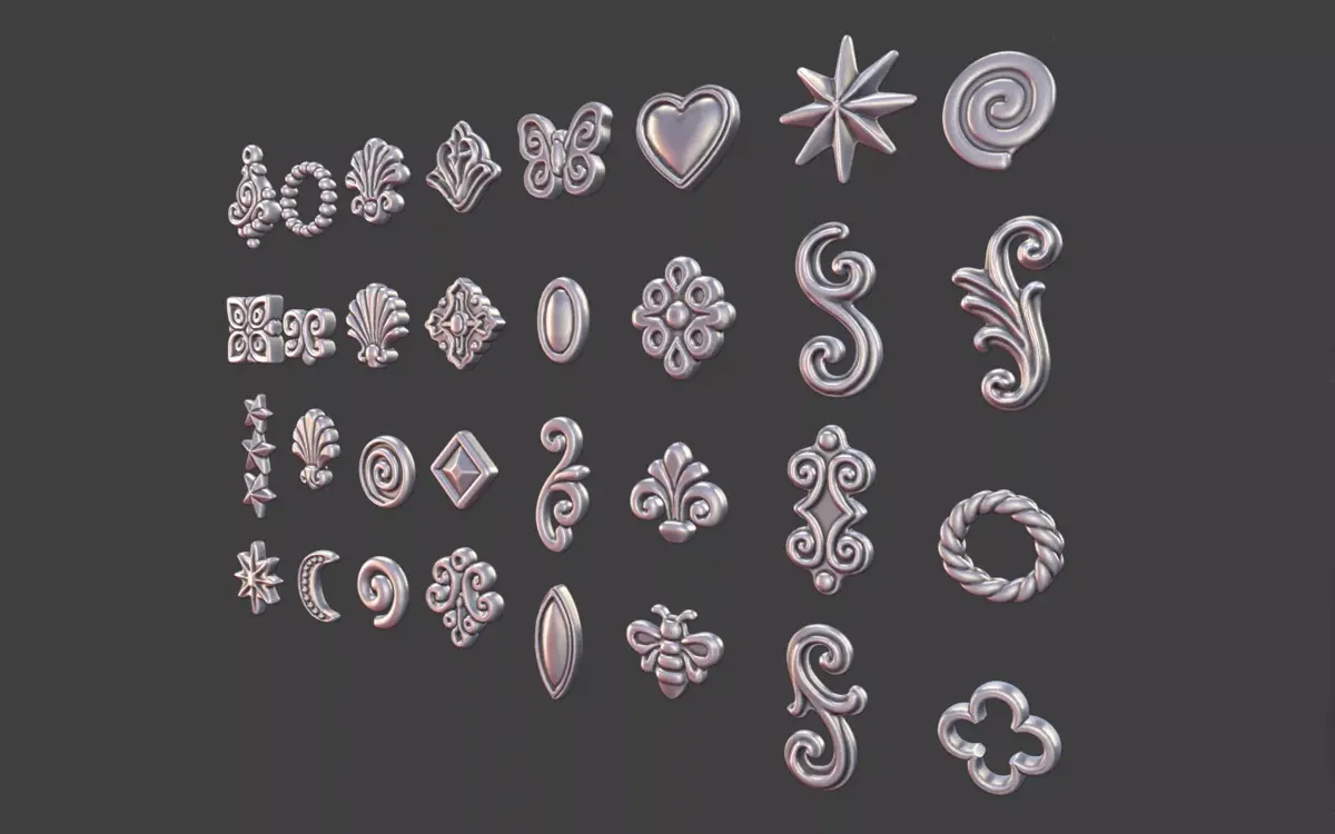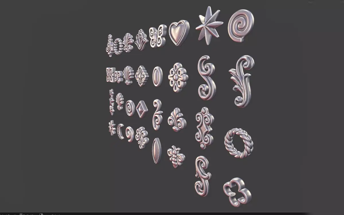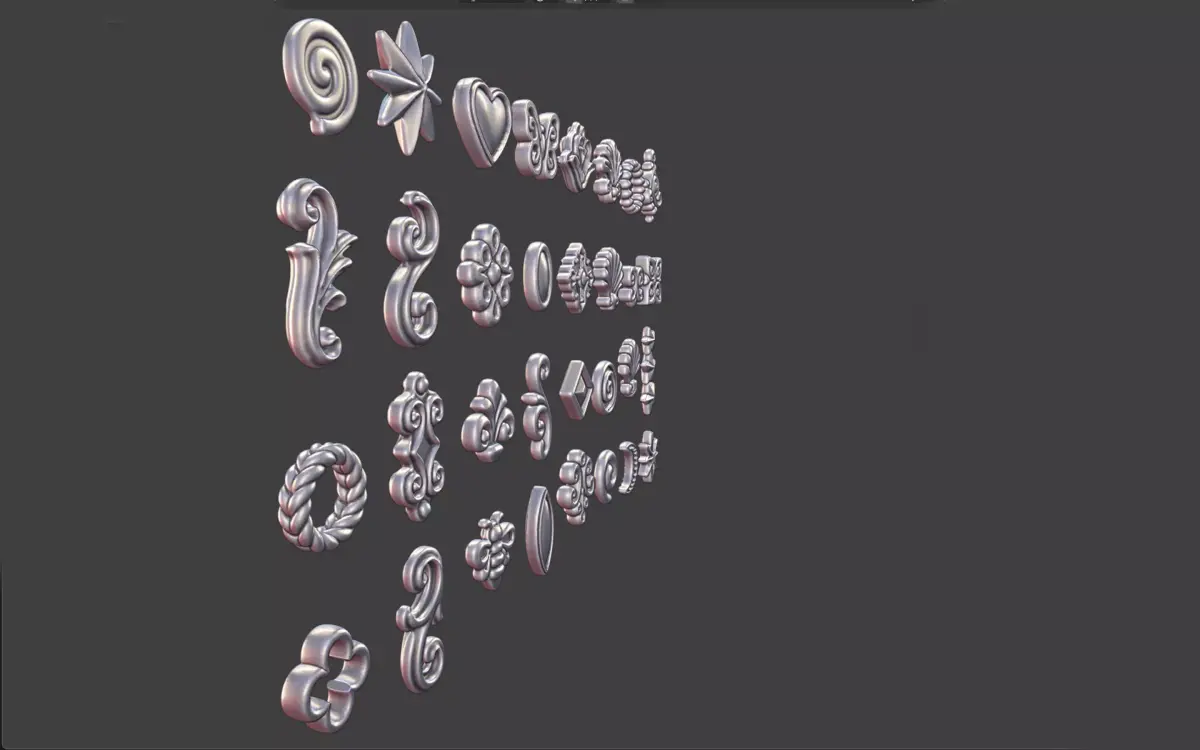 A beautiful collection of 32 ornamental 3D models perfect for jewelry production, decorative modeling, and digital art.