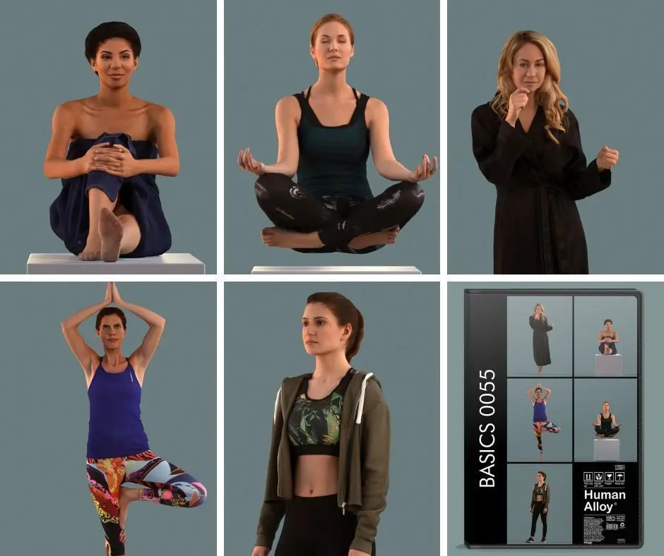 Most of the times 3D people need to blend seamlessly into the background of your visualizations. Human Alloy ‘Basics’ 3D people do just that. They are lightweight, easy to drop in your 3D scene and won’t clog-up your computer and at a appropriate price at that.