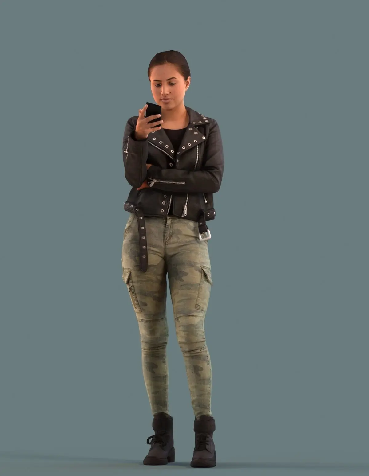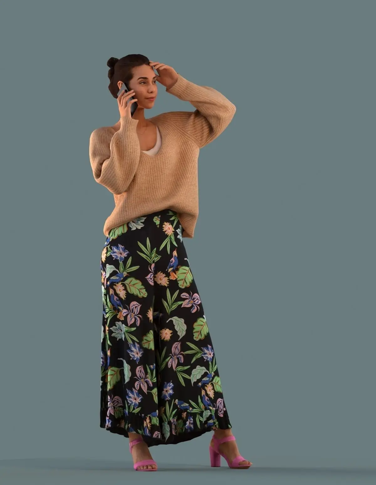 Set of 3D women on the phone for Virtual Reality (VR), Augmented Reality (AR), games and other real-time apps.