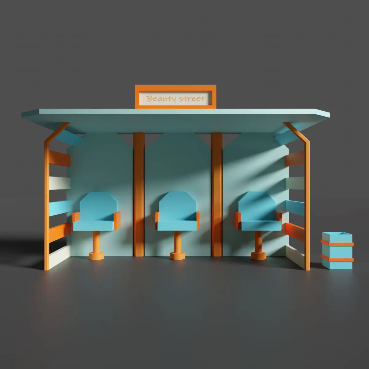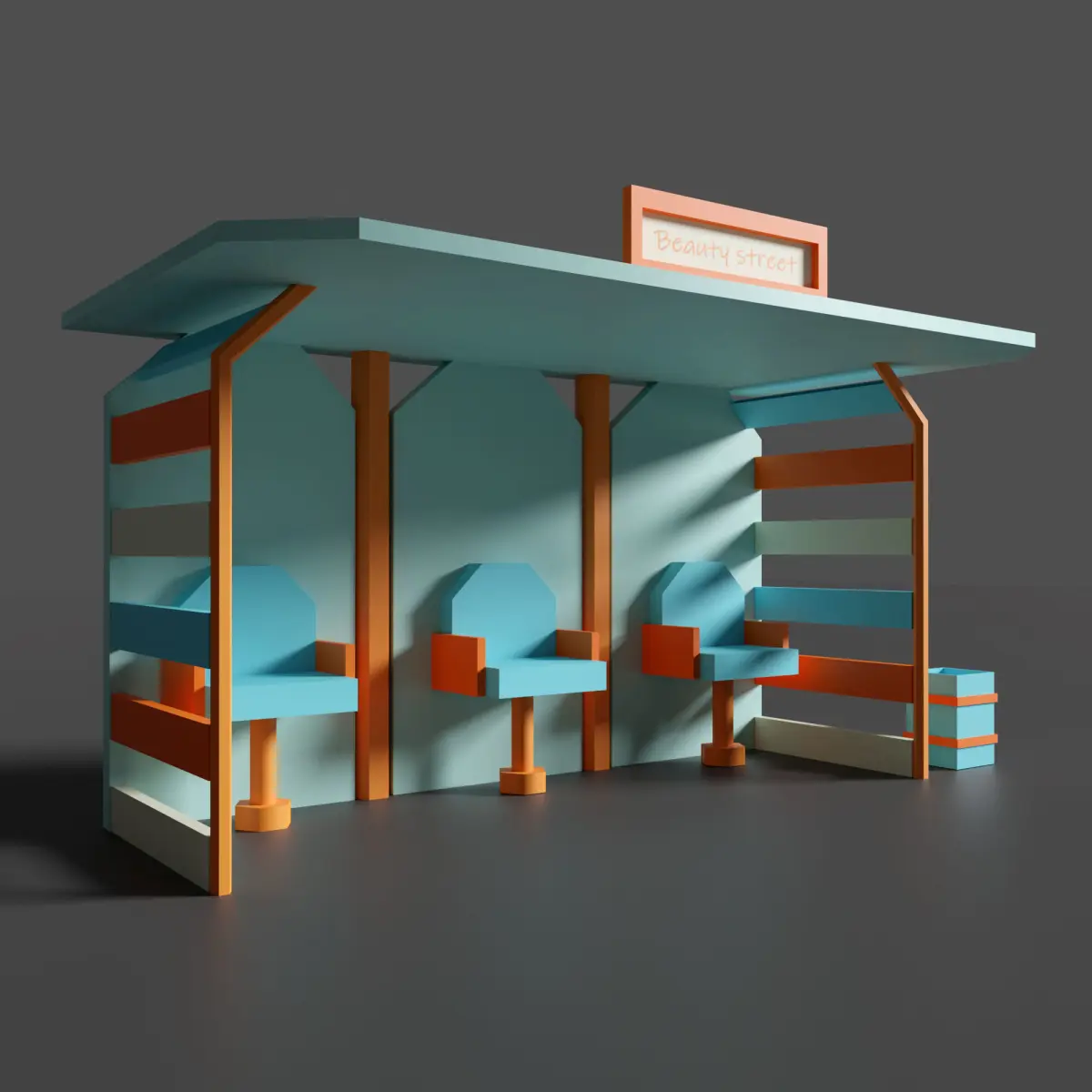 Low poly 3D models Bus stops in bright colours. These amasing bus stops will be really nice for your low poly exterior. Available in different formats : FBX, OBG, Blender files +texture. These models include minimum number of polygons. Created in Blender.