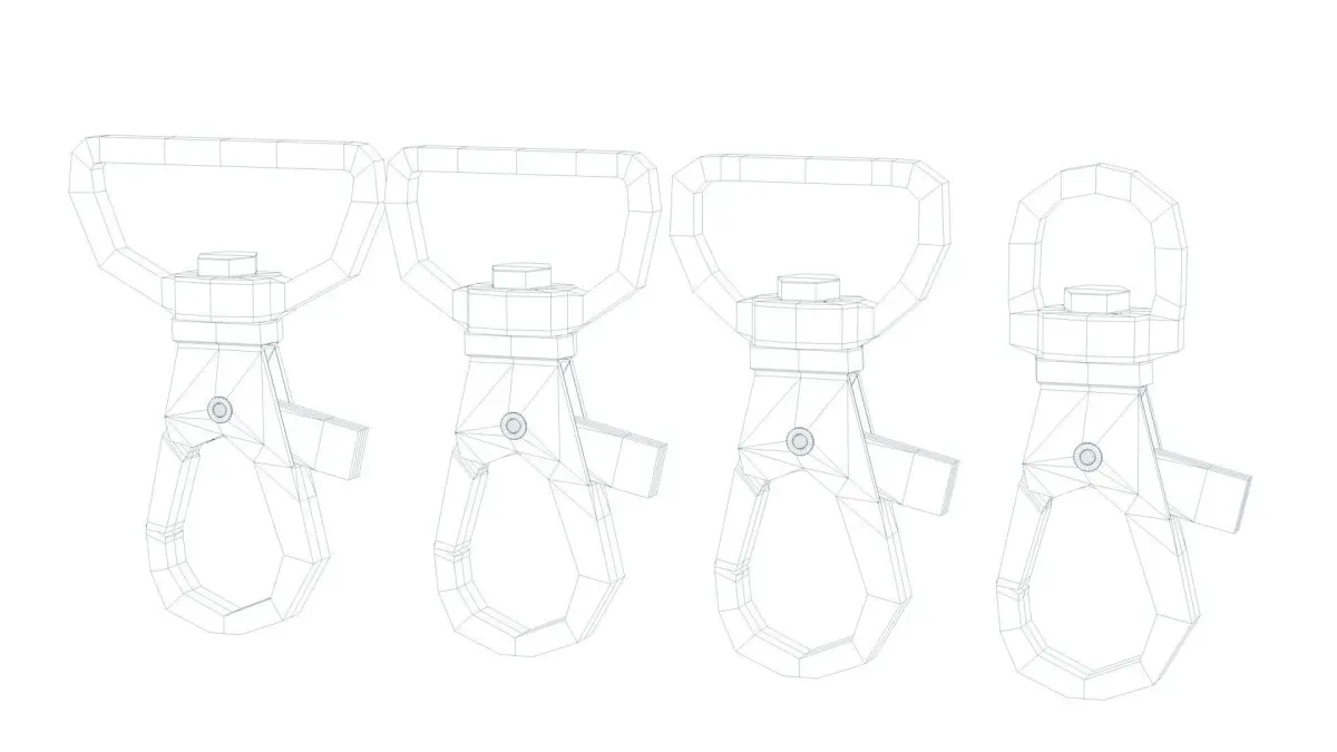 A set of 4 low-polygon carabiners for use on lanyards or similar. Use Subdivision to make it smoother. Created in Cinema 4D. PBR metal material included in c4D-File.