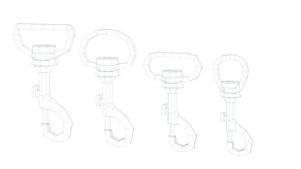 A set of 4 low-polygon carabiners for use on lanyards or similar. Use Subdivision to make it smoother. Created in Cinema 4D. PBR metal material included in c4D-File.
