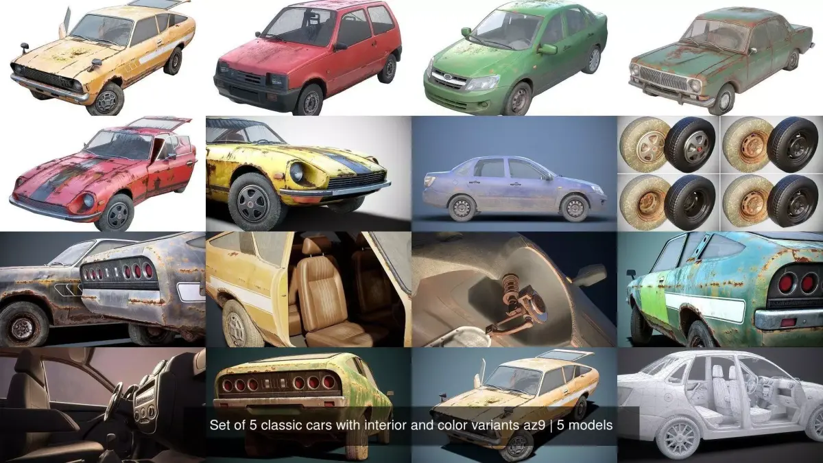 - Old Classic car Sedan Set with interior in 9 color variants