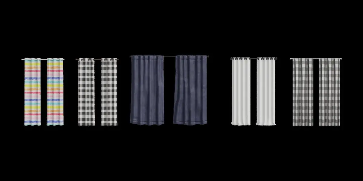 This model is a set of 5 curtains with different colorsIt's suitable for decoration in your living room, bed roomThe file consists of blend file format with 4k resolution baked textures:_ Base color_ Metalness_ Roughness_ Normal