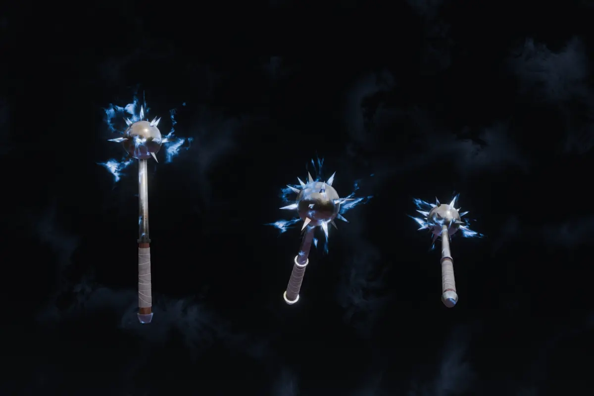 Embark on a journey with this stunning collection of 6 elemental Morning Stars (ice Morning Star, fire Morning Star, shadow Morning Star, poison Morning Star, water Morning Starand lightning Morning Star).