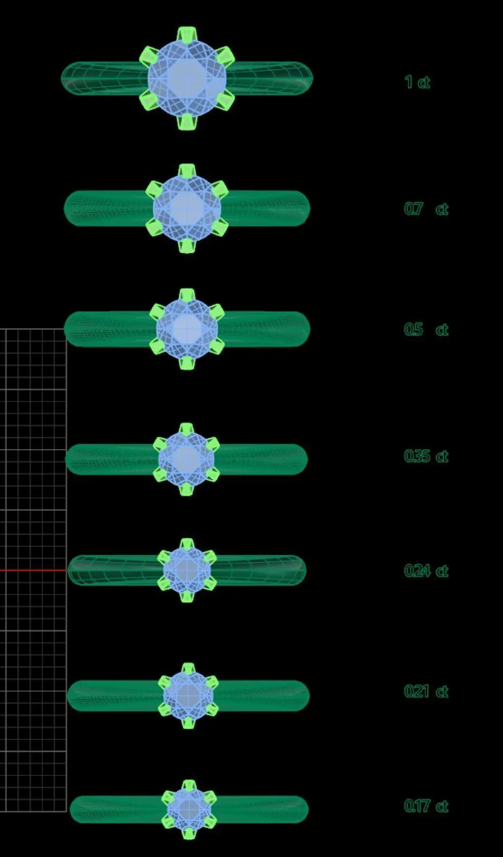 Stone sizes: 0.17 ct / 0.21 ct / 0.24 ct / 0.35 ct / 0.50 ct / 0.70 ct / 1.00 ct