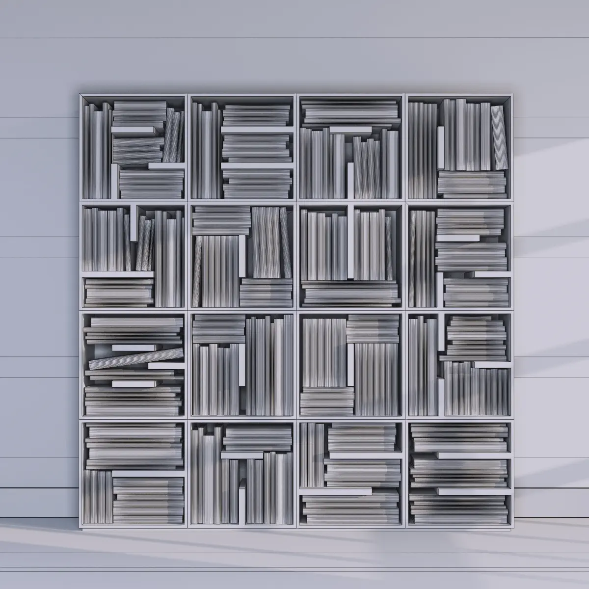 In the archive there are all the models represented on the renderer: a bookshelf, books, a rack