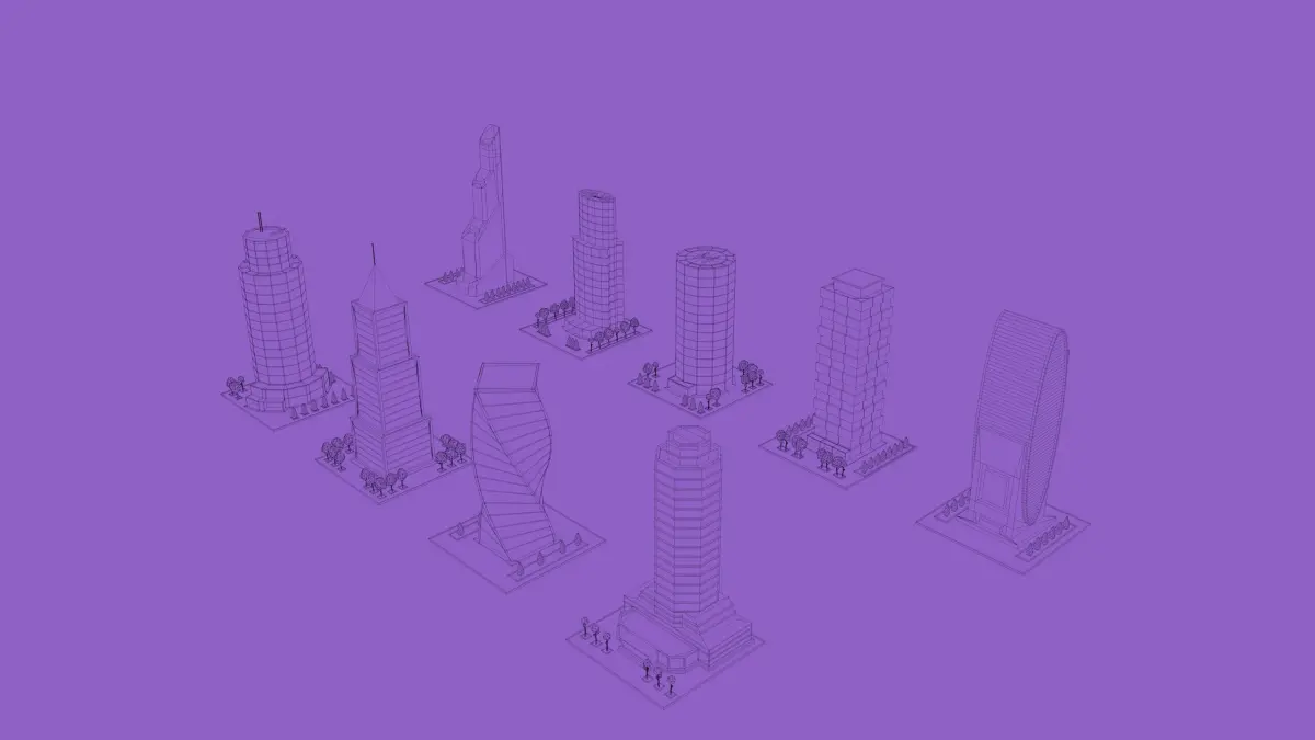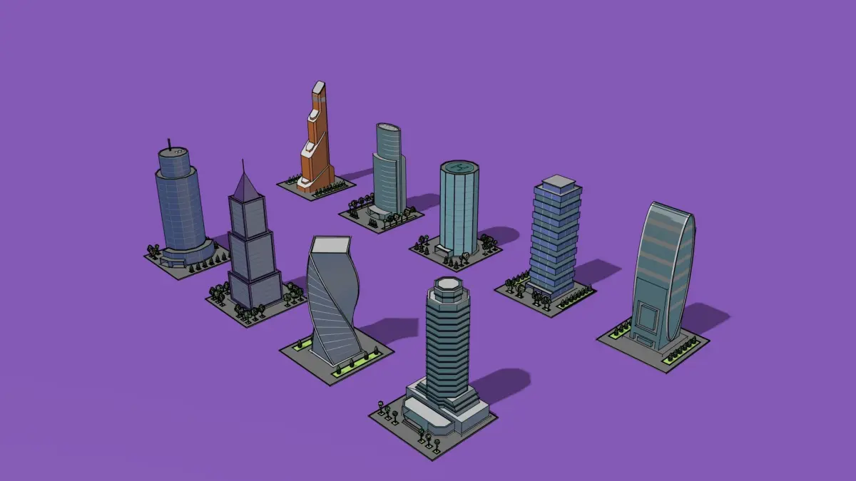 A set of cartoon low-poly models of towers and skyscrapers. Included Format: