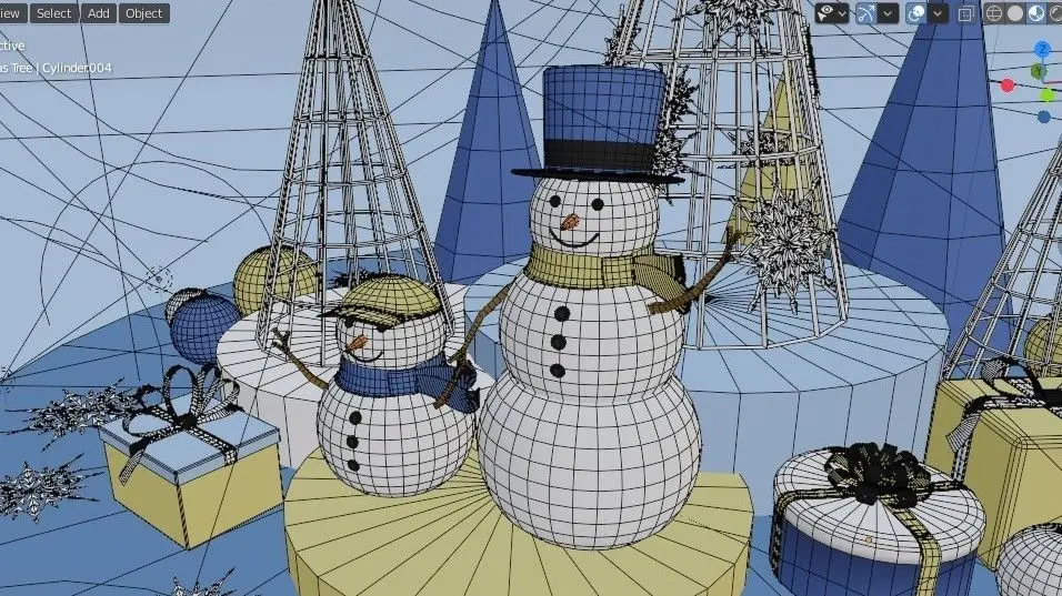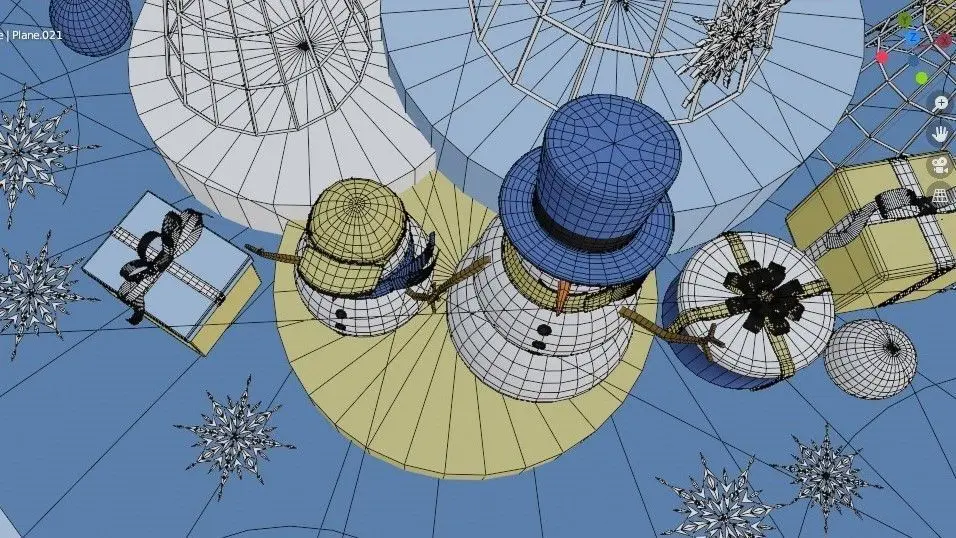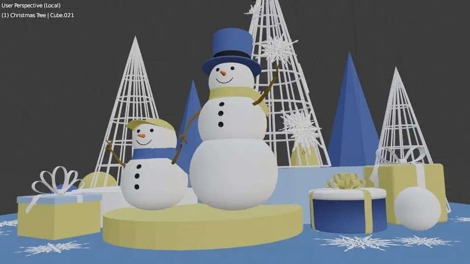 The highlight of this model is Christmas tree with steel frame, snowflakes, snowmen and gift boxes.