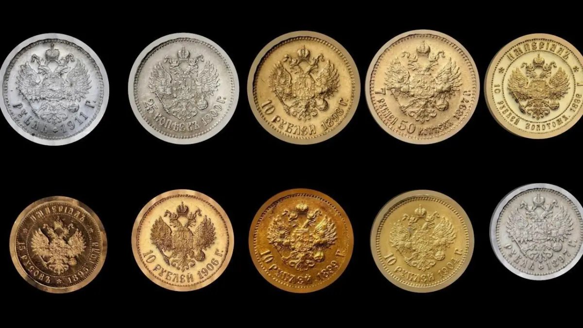 Set of 10 coins of Nicholas II . The set includes: