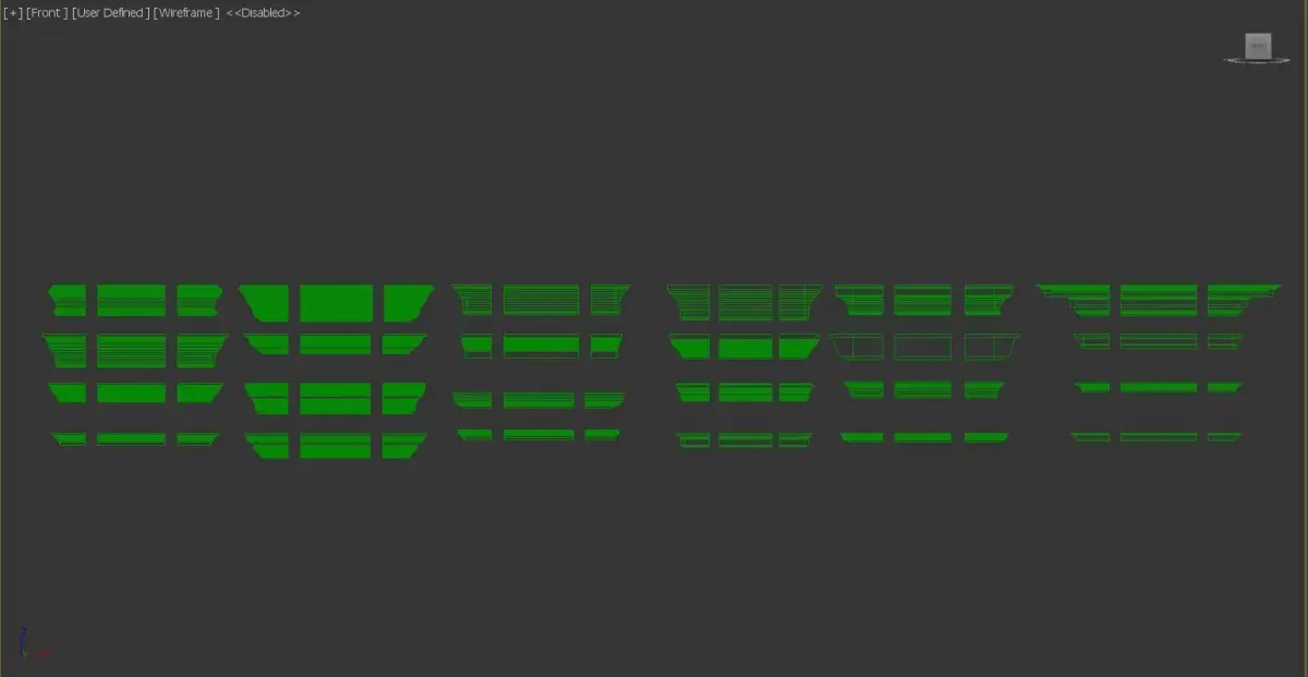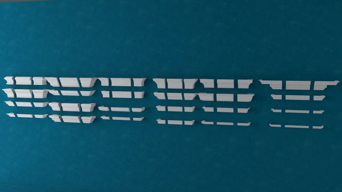Set of Cornice Moulding Profiles Including Corner Low Poly 3D model