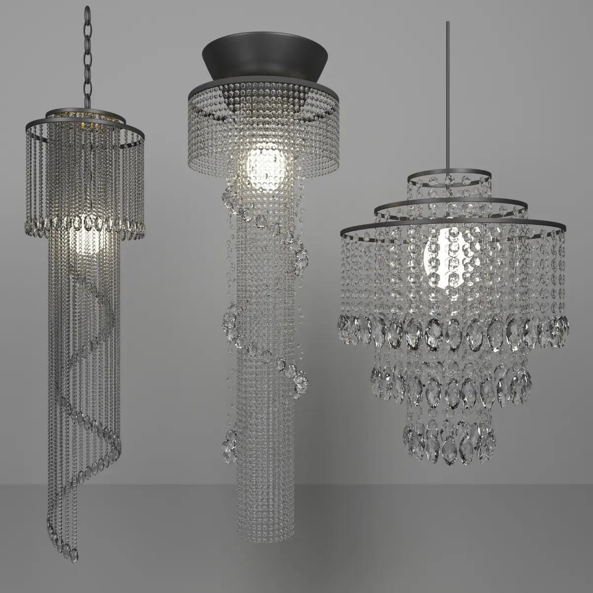 This set consists of four crystal ceiling lights ideal for architectural visualization. These models will look stunning in all kinds of luxury apartments or in art nouveau buildings, expensive hotels and more