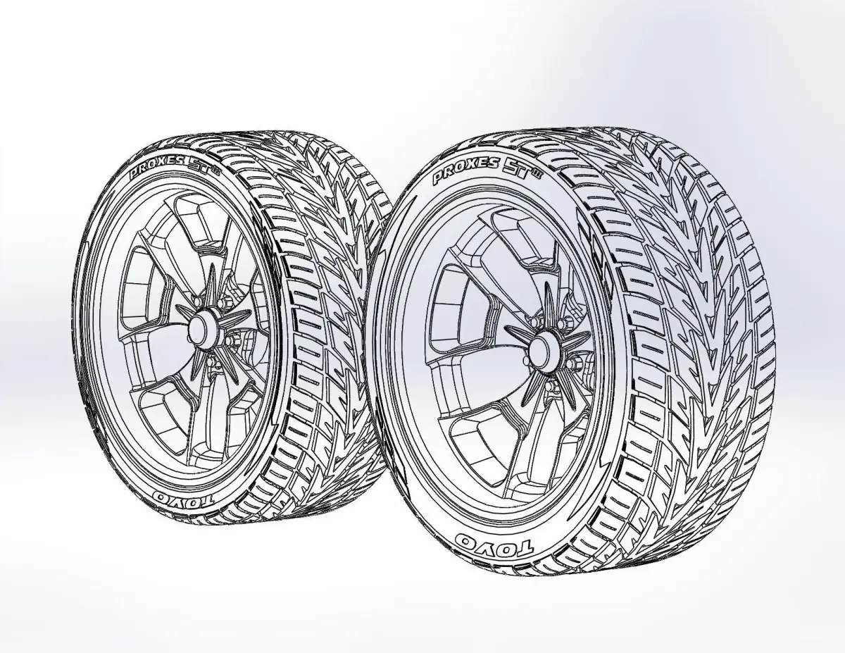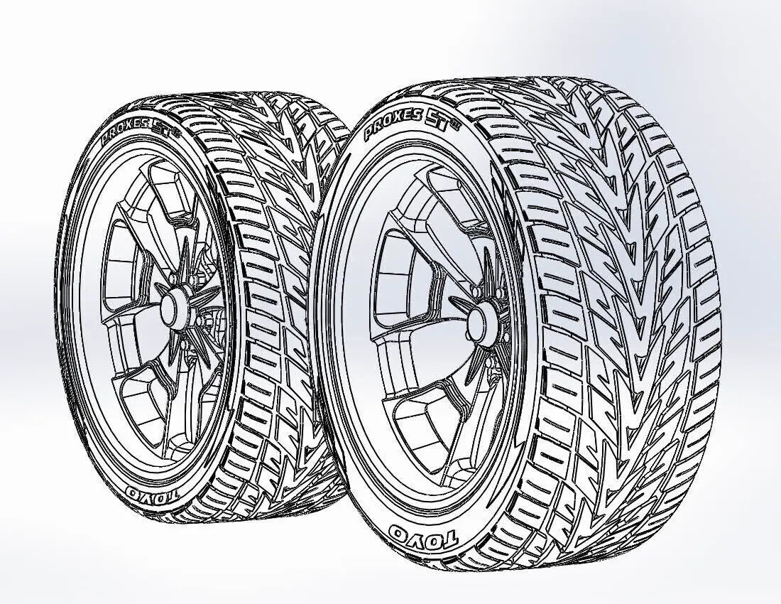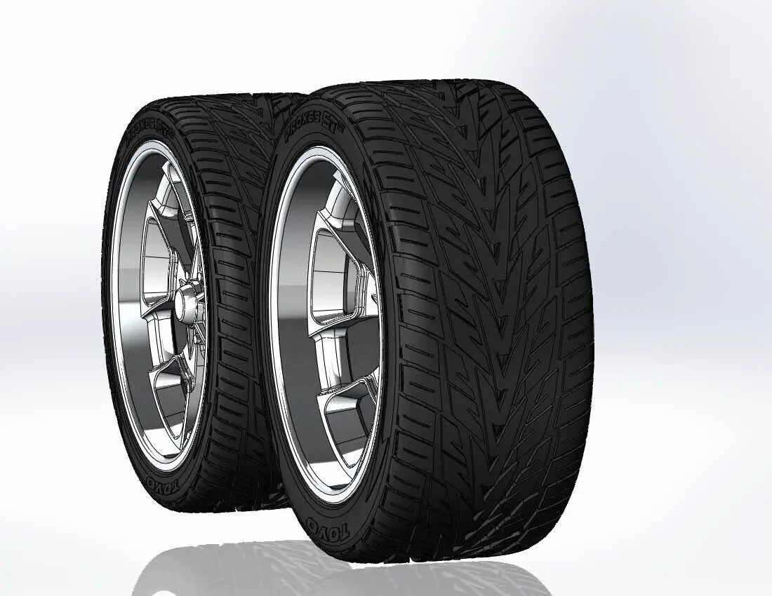 3D-printable wheels (rims and tyres separately and as one body) for your scale- or RC model. Rims style - Billet Specialties Reaper, front 20x10, rear 20x11; Tyres - front 285/30 R20, rear 315/35 R20 with a detailed tire tread pattern