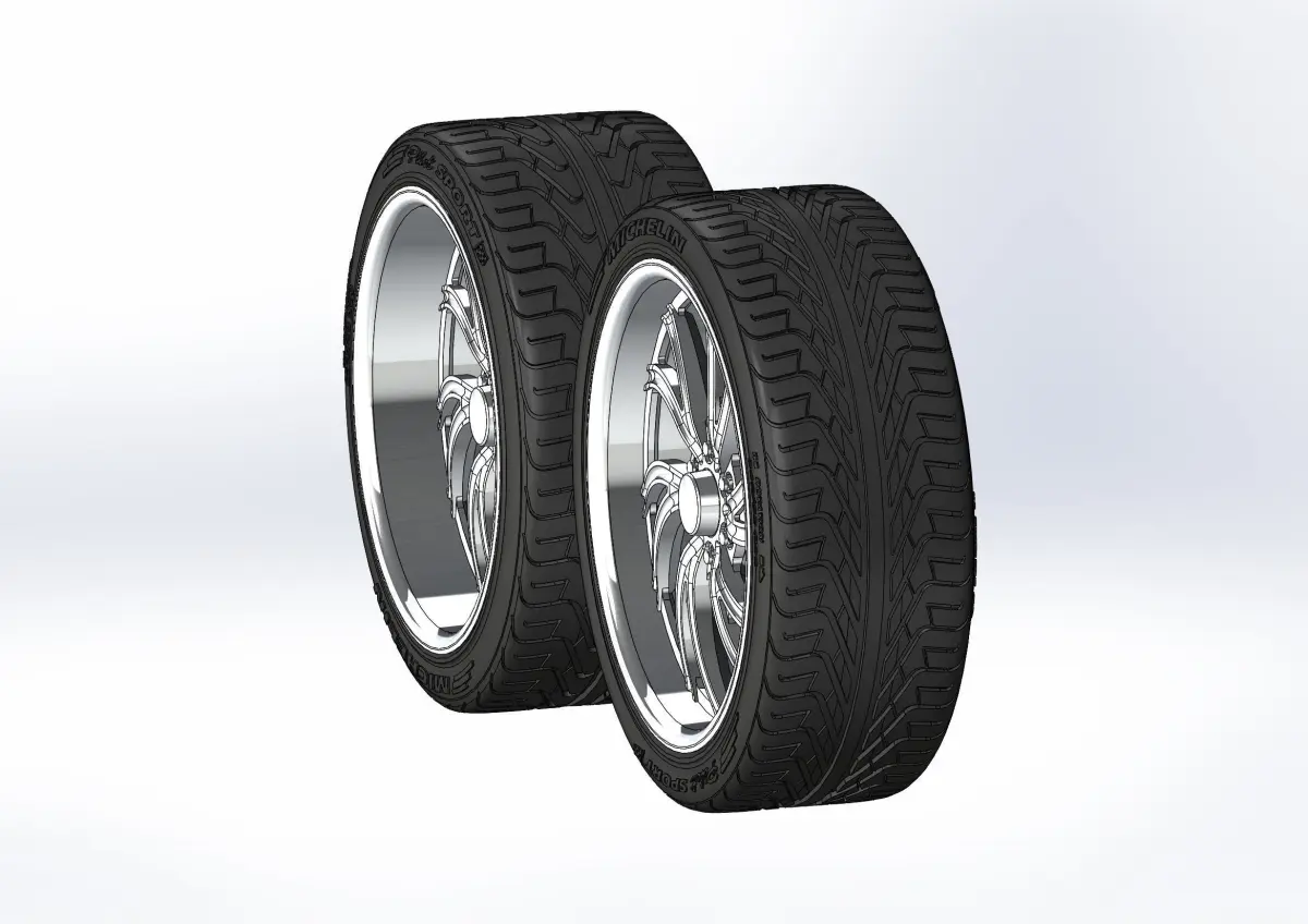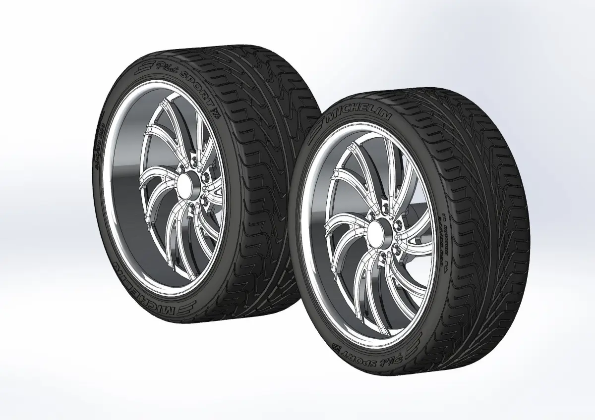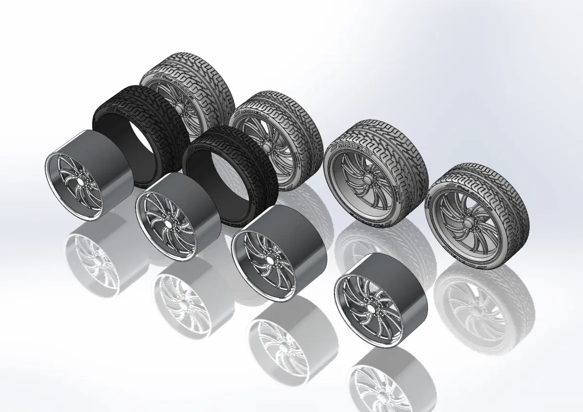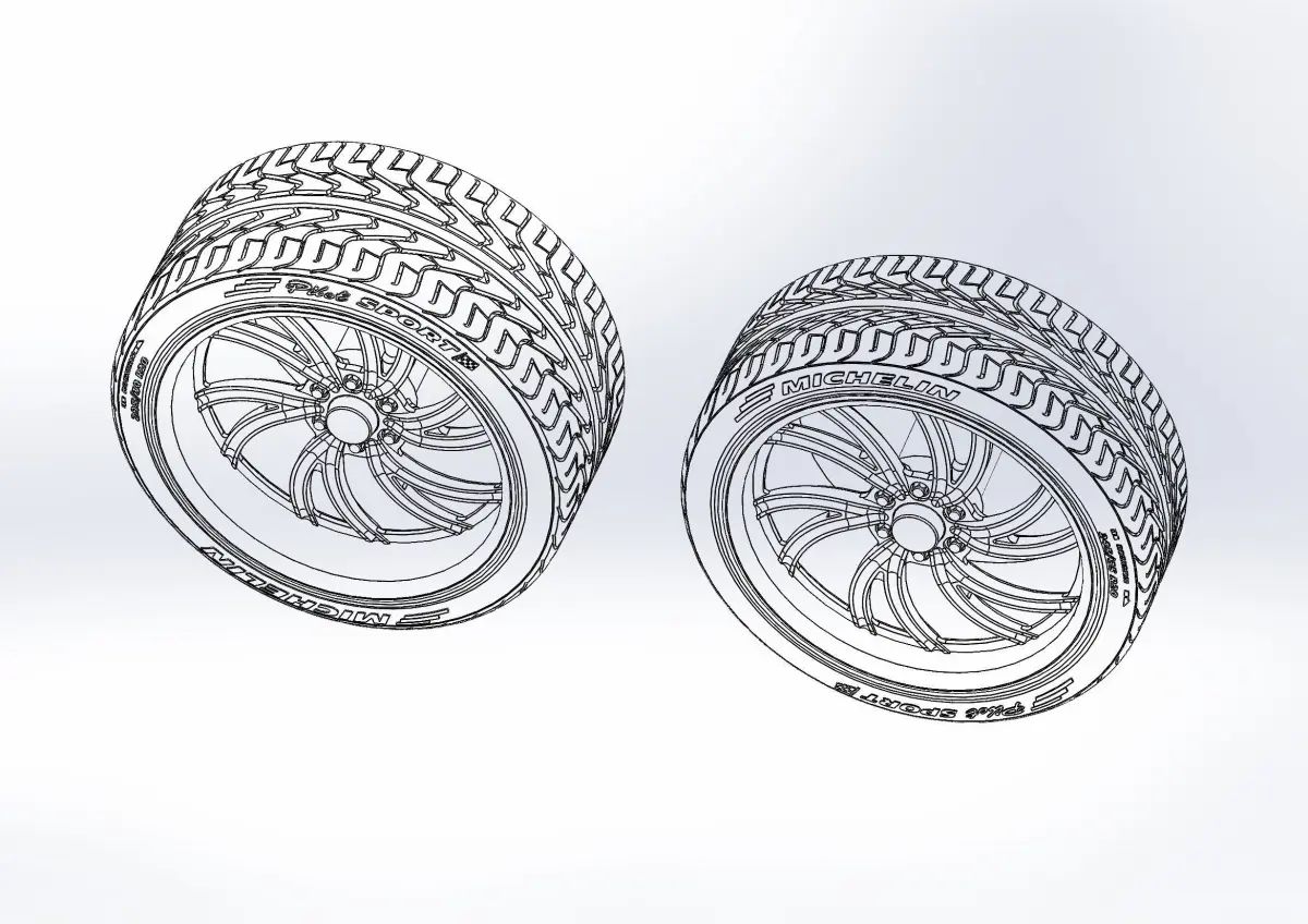 3D-printable wheels (rims and tyres separately) for your scale or RC model. Rims style - Intro Spyder; front - 20x8.5, rear - 20x11; Tyres - 245/35 R20 front and 295/30 R20 rear, with a detailed tread pattern