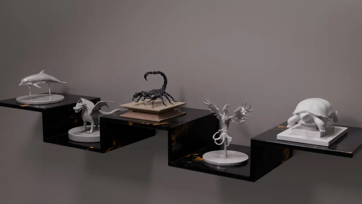 Set of 5 statues (phoenix, dolphin, scorpion, turtle, dragon), house decoration