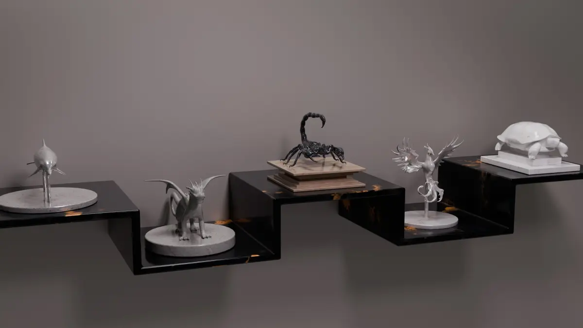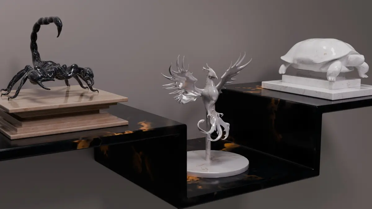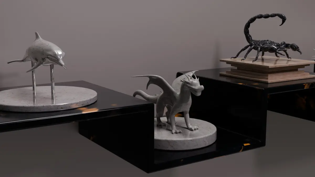 As you can see from the thumbnails, all 5 statues (Dolphin, Dragon, Scorpion, Phoenix and Turtle) are included in the set and can be used as regular statues without being used as statues.