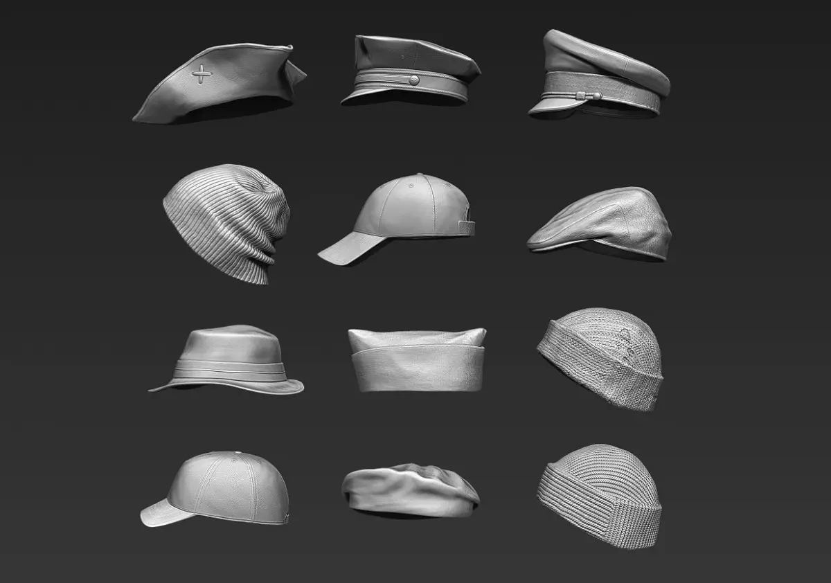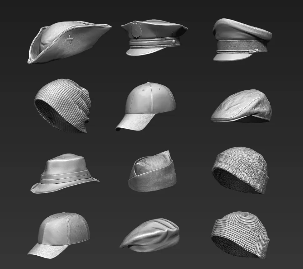 Headwear set Part 1 created in Zbrush.Set consist of 12 different hats and caps with high level of detail.The models is a high poly sculpt with decimated topology.You can do a game ready model from it, or prepare it for 3d printing easyly!Available formats:-ZTL (12 subtools)-OBJ (12 files)-IMM (Insert multi mesh brush for Zbrush)Total polygon count:Polys: 4,314,199Verts: 2,172,653Hope you will like it!Just click on my logo and check out the other cool stuff!