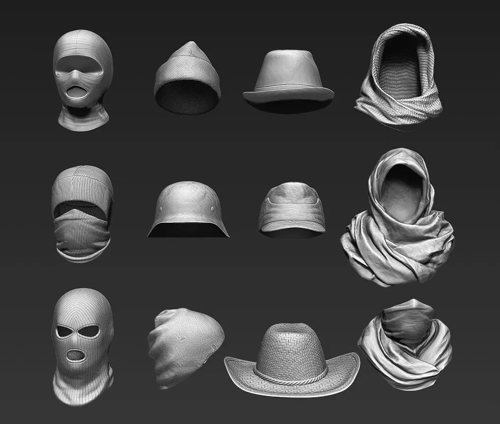 Headwear set Part 2 created in Zbrush.Set consist of 12 different hats, masks and caps with high level of detail.The models is a high poly sculpt with decimated topology.You can do a game ready model from it, or prepare it for 3d printing easyly!Available formats:-ZTL (12 subtools)-OBJ (12 files)-IMM (Insert multi mesh brush for Zbrush)Total polygon count:Polys: 8,096,926Verts: 4,059,833Hope you will like it!Just click on my logo and check out the other cool stuff!