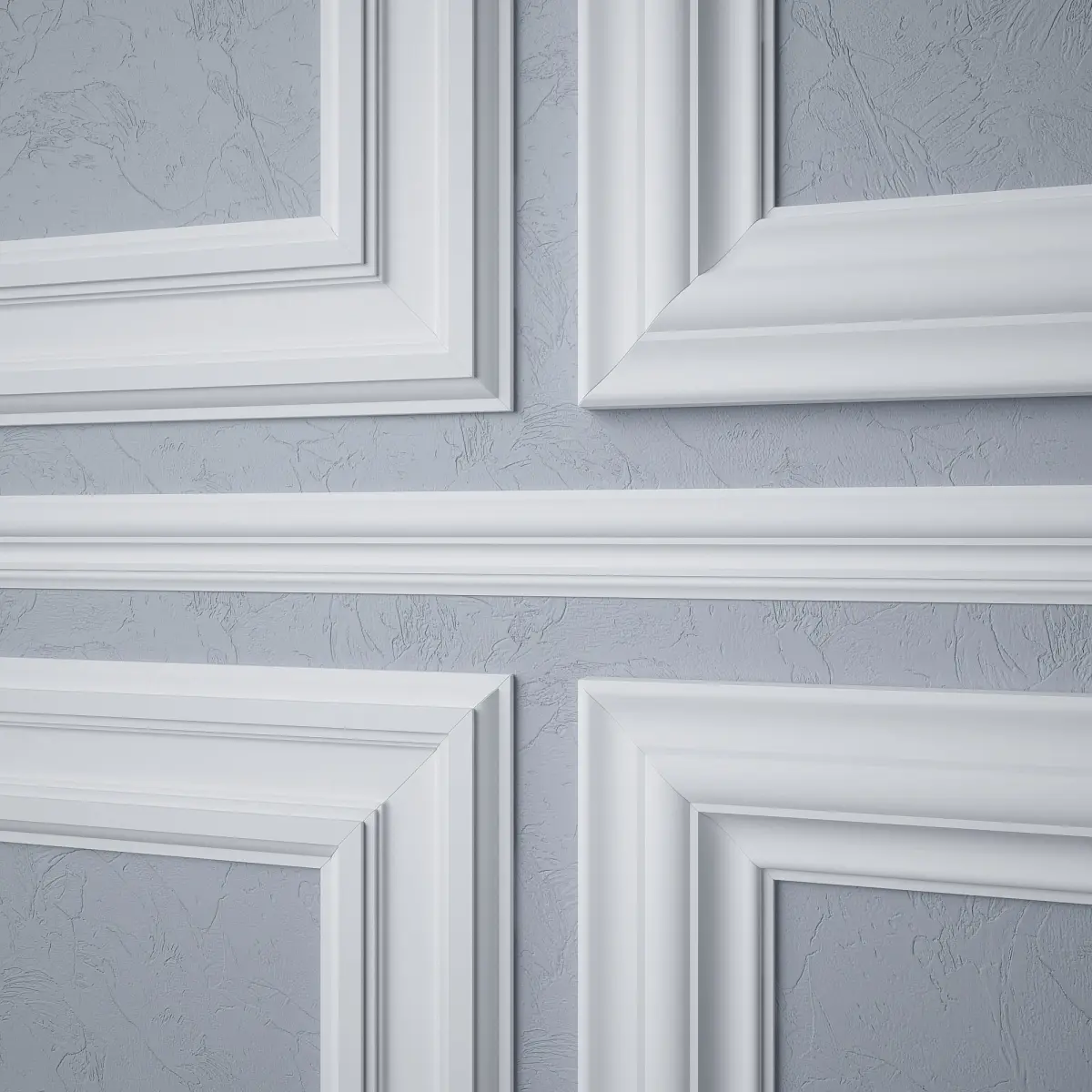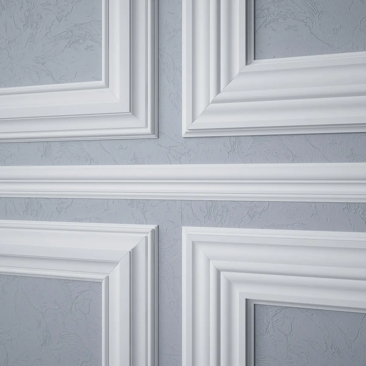 The set includes four decorative classic wall moldings, a ceiling molding and a skirting board.