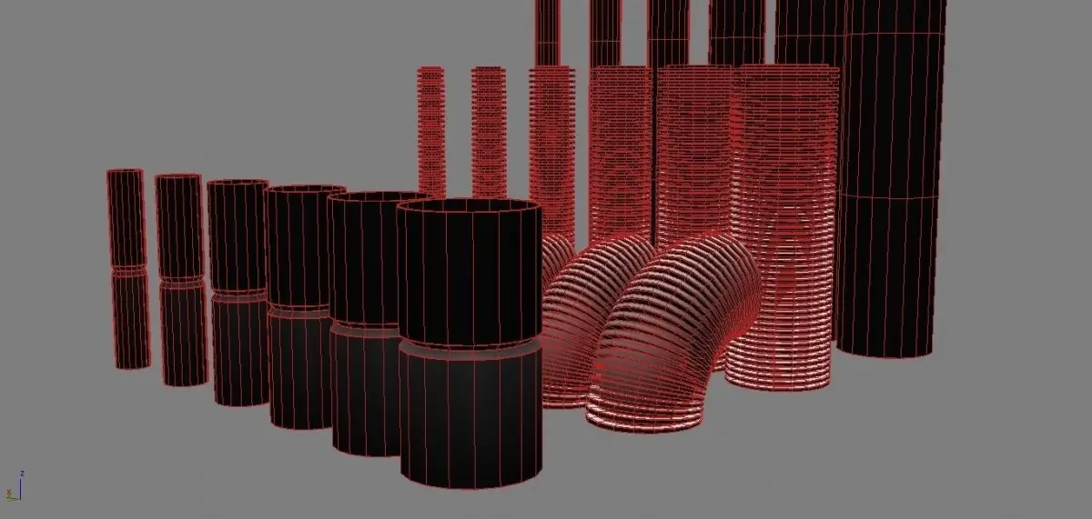 The set of mounting tubes. Two sets: Low poly set (35 000 polys all 24 segments) and ready up for MeshSmoothx2 set (71 000 polys all 24 segments without smooth)