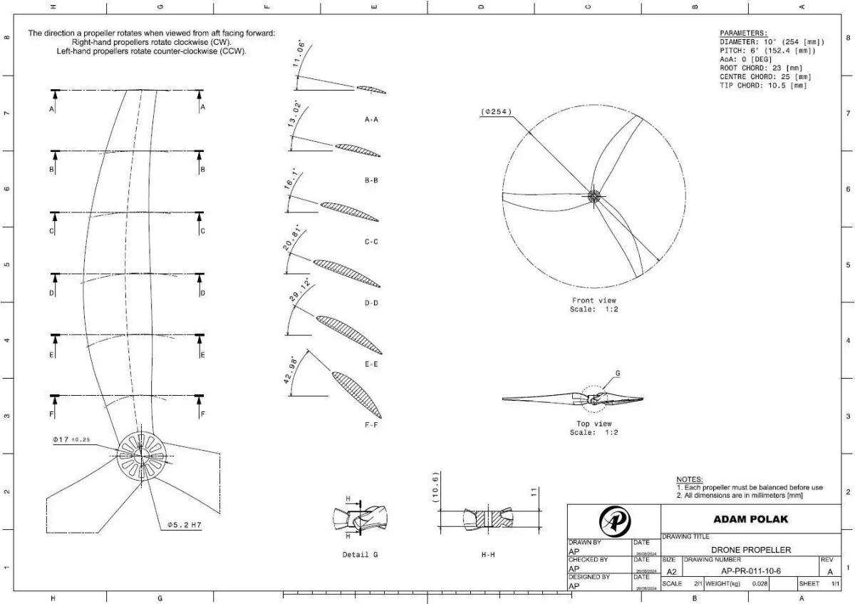 The blade of this propeller is designed to be robust and could withstand higher forces even for 3D printed propellers. This blade is ideal for heavy duty and low maintenance operations.