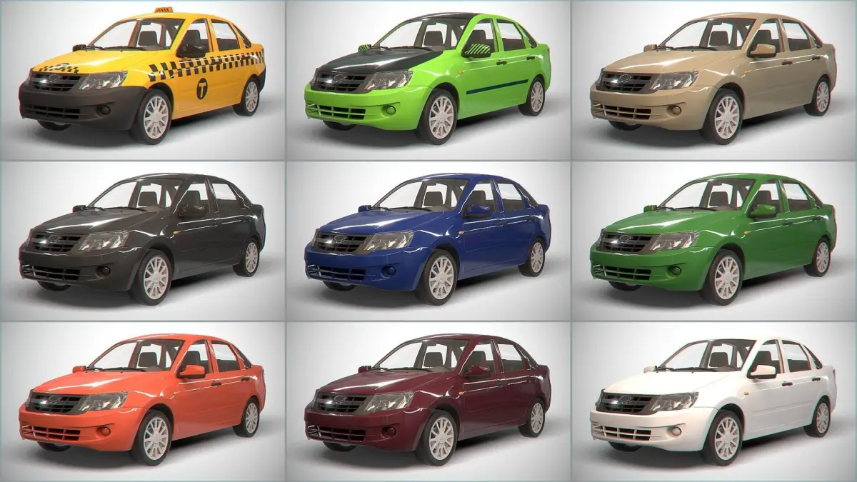 - This product consist one of low polygon PBR model of set of Retro sedan car with interior in 9 color variants