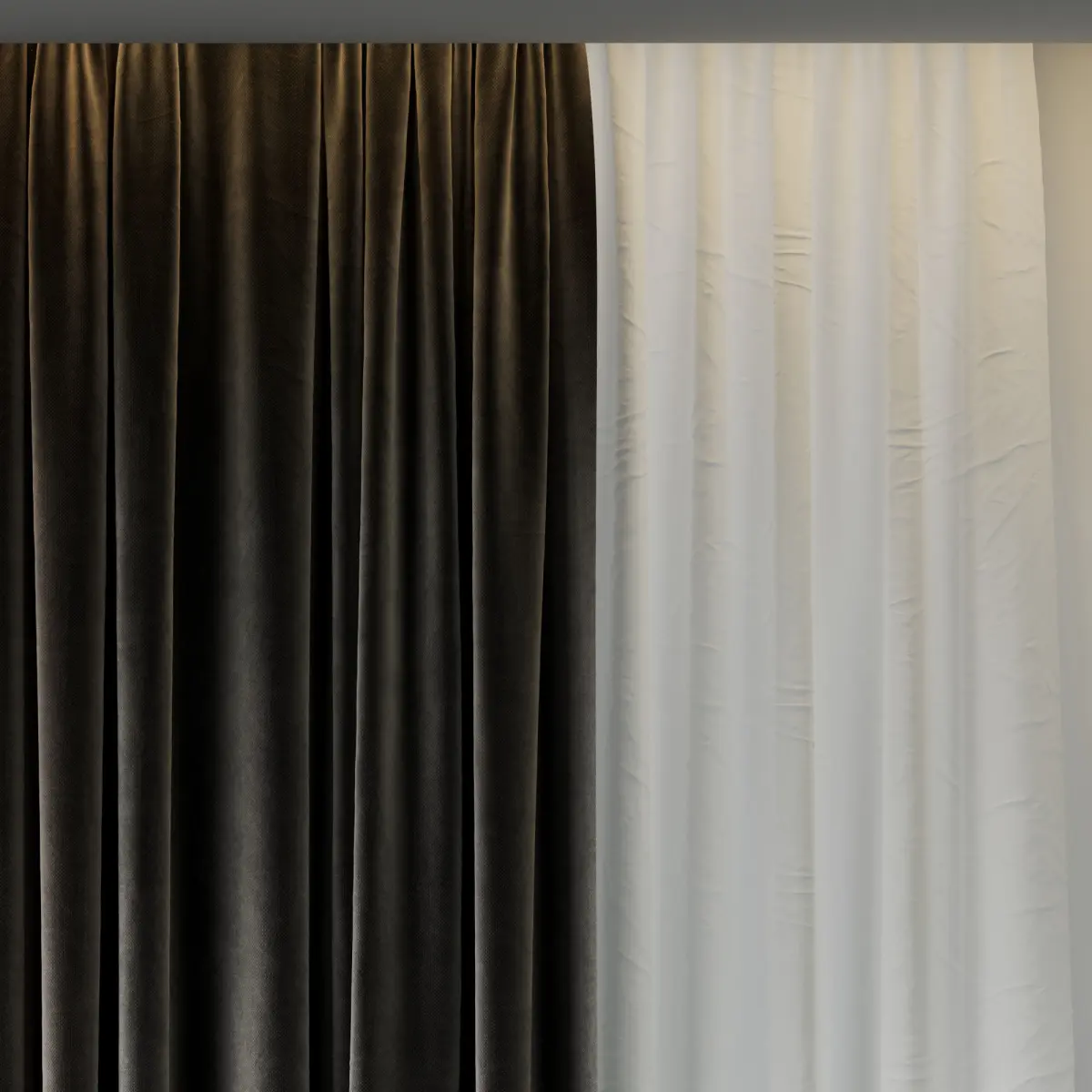 Set of soft brown silk curtains with wrinkles - collections 07 HBH