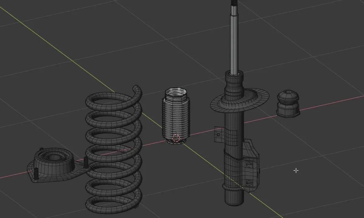 Set of spare parts for passenger car:shock absorber, strut mounting, coil spring, buffer mounting, dust cap