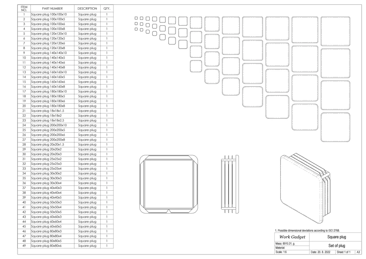 This is solidworks model square plug. All sizes and parts are executable and buildableCan be used to import games, videos, 3D printing and more.Set plugs: