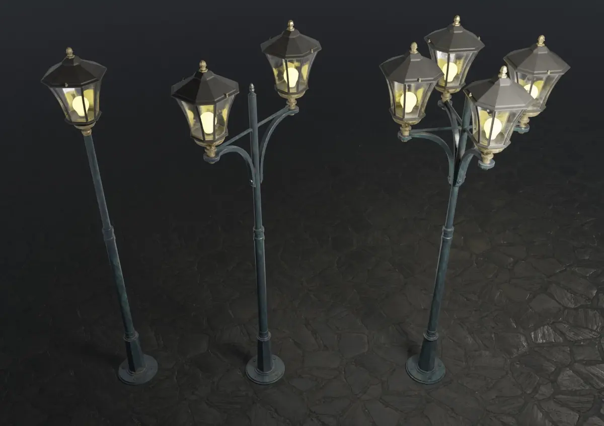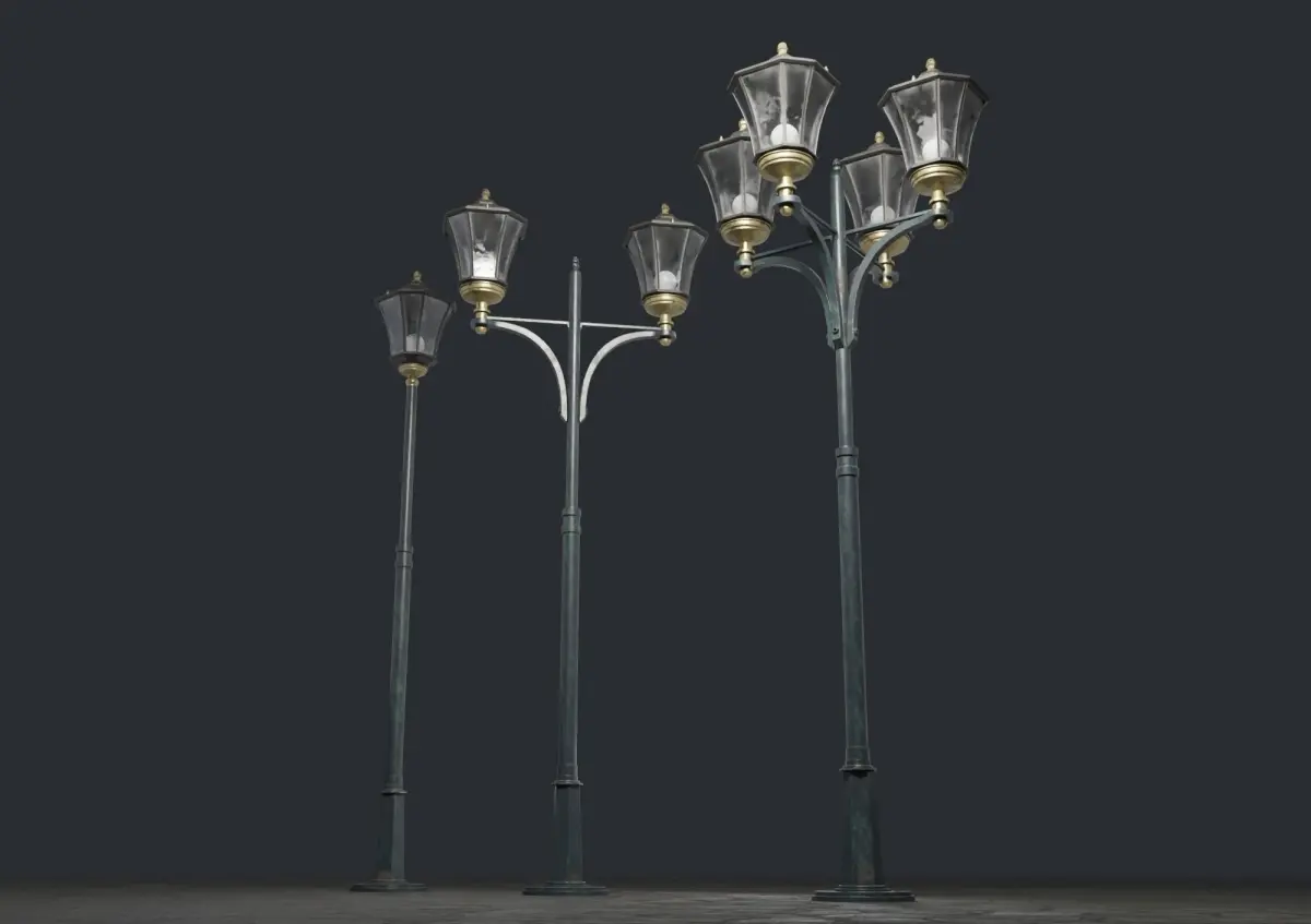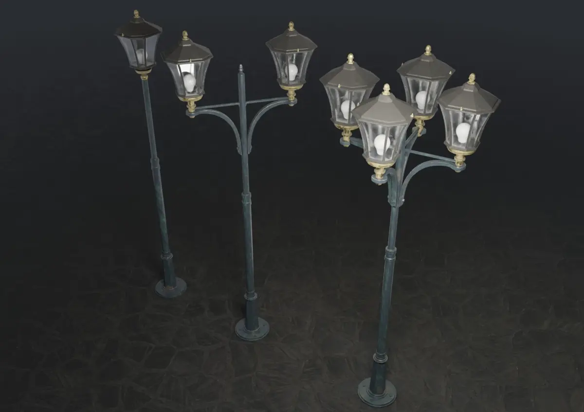 A set of three spherical street lamp models, for use in exterior visualizations. Each model has one textures set 2048x2048, PBR Metal/Roughness. Emmisive map included in textures, which allows you to adjust the lighting of the lamp. The models has one level subdivission, but can also be easily subdivided into higher levels.
