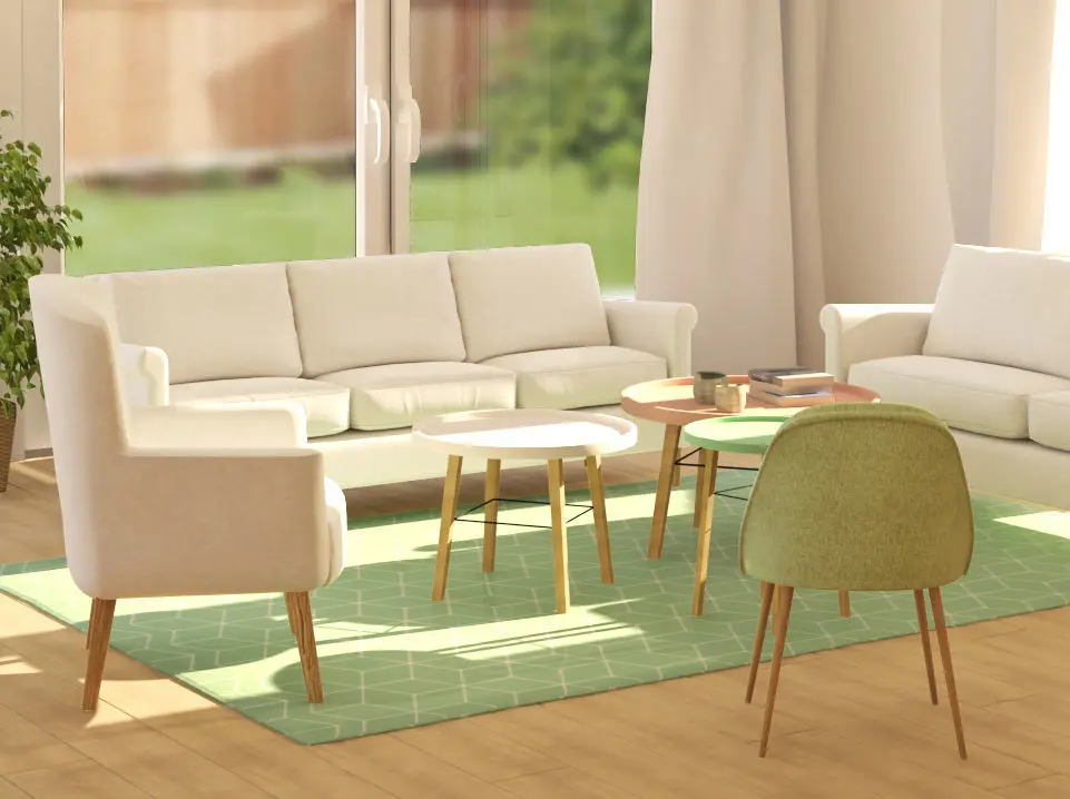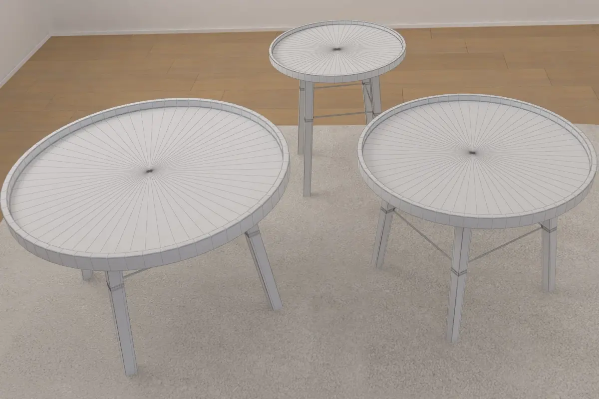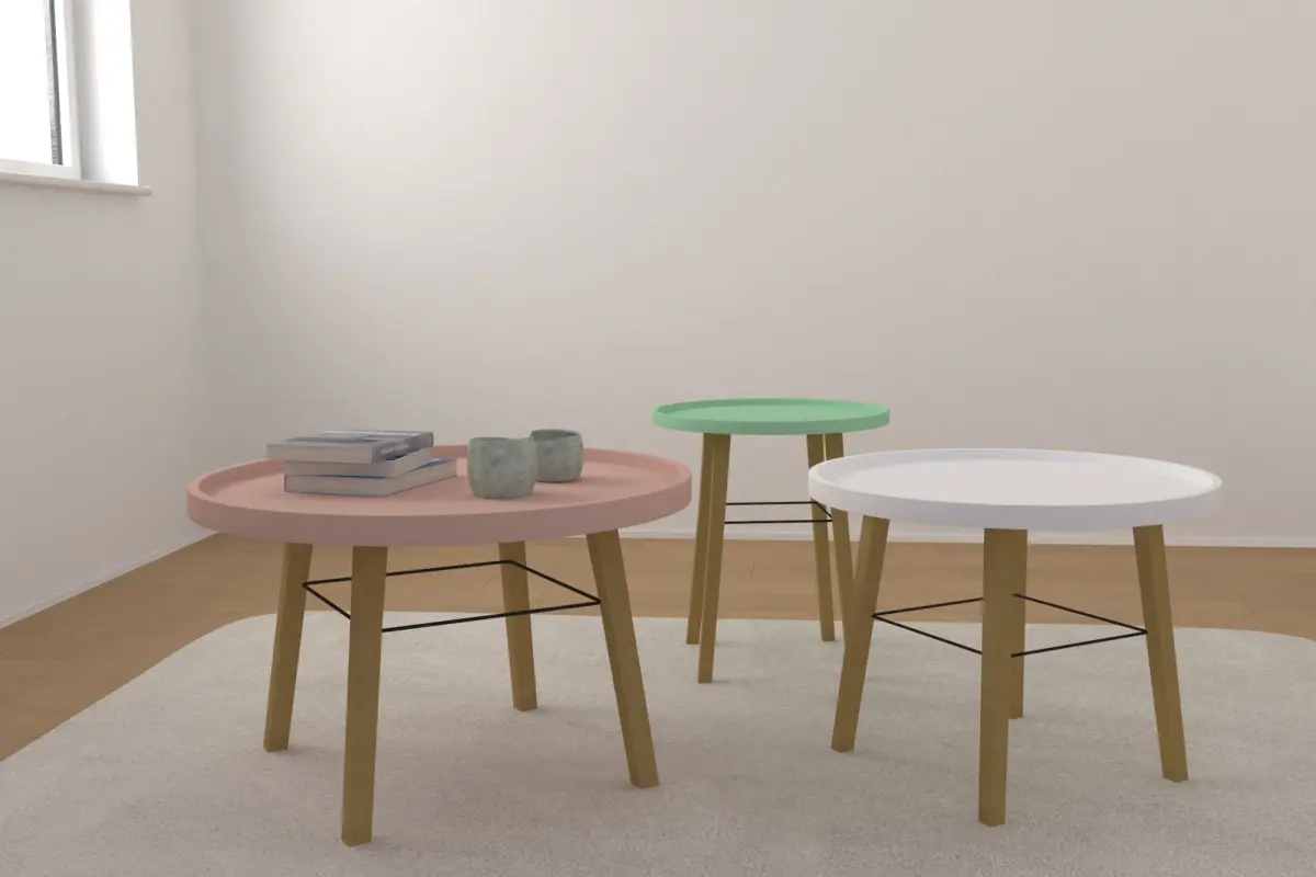 This is a set of three tables in various sizes. This scandinavian style in light colors brightens up interiour visualozations.