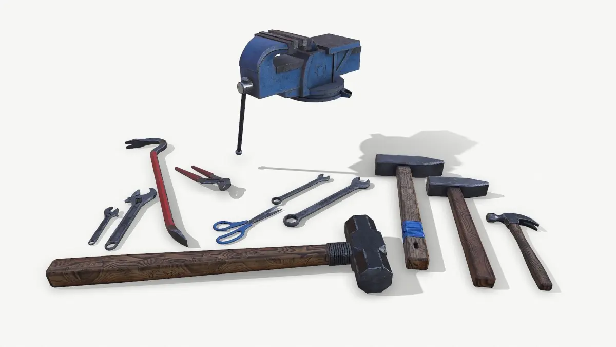 RAR & ZIP included file formats: -mb -fbx -dae -obj -TGA Low poly: 6522 tris TEXTURES: Tools_mat_02_AO Tools_mat_02_DMTools_mat_02_NM Tools_mat_02_RM Tools_mat_02_HM Tools_mat_02_MM (4096x4096)&(2048x2048) The scene was modeled with Autodesk Maya 2018. All objects are grouped and named correct for easily selections and management. You will have 12 unique models. You can customize the workspace to your liking. I only used 1 material for all models. Your game will look good and optimize at the same time.No special plug-in needed to open the scene. Entire scene was modeled at real scale. This model is scaled to real world. Units of measurement: centimeters. All materials named correct. Model include game-ready texture. Very easy to work it.