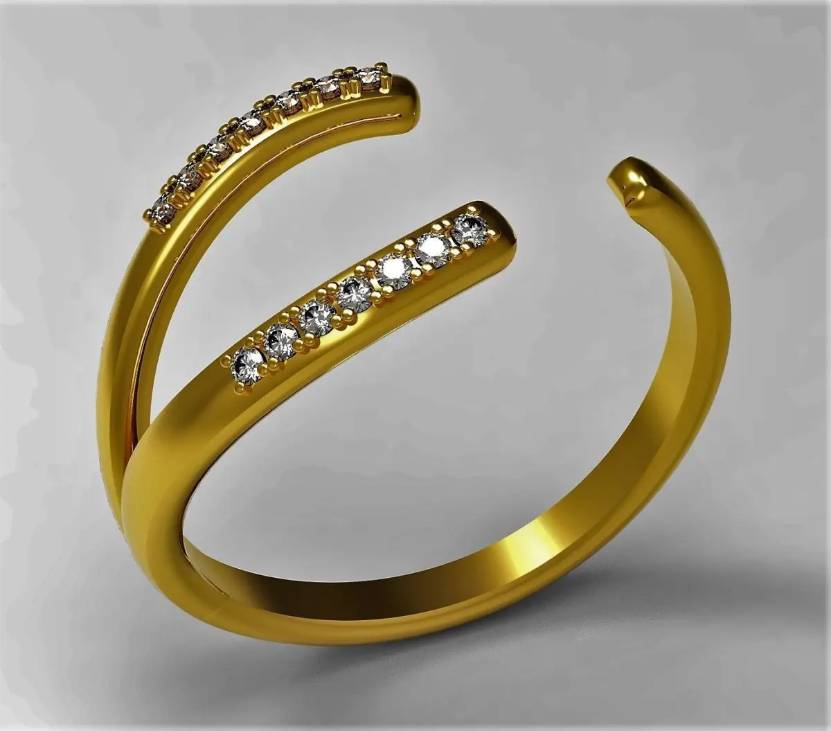 A set o two rings, in a V shape, one with stones pave setting, and the other one without them.Very light weight both of them