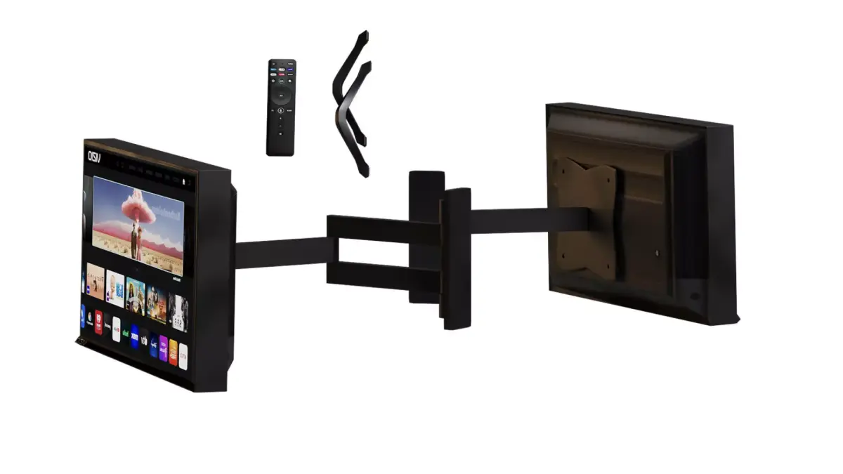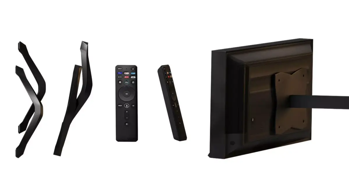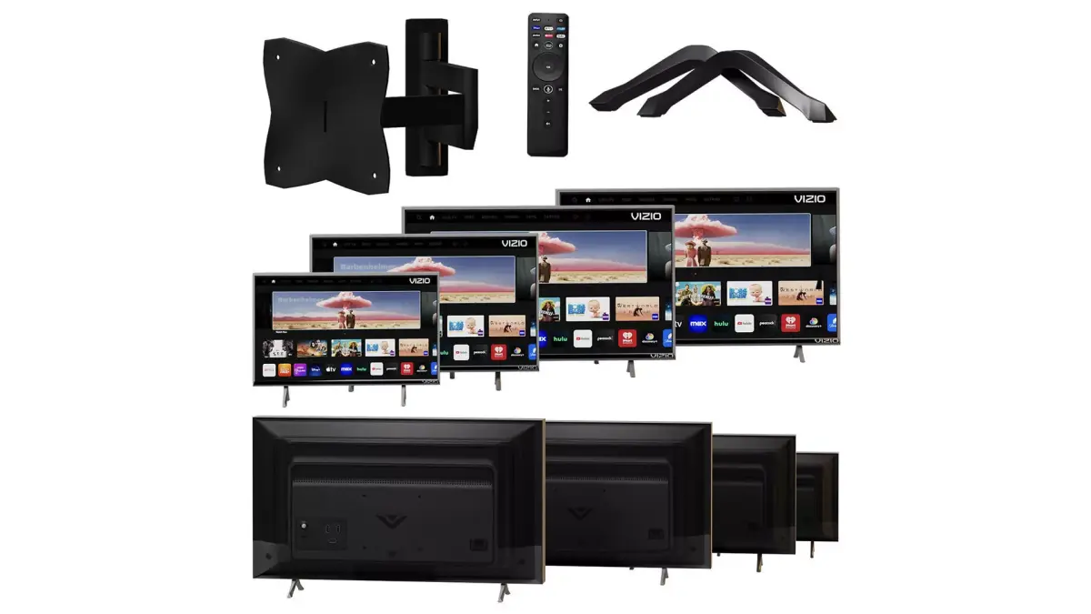 A set of compact TVs from Vizio D series complete with remote control and mountsIn file:Vizio D24 (53x32cm)Vizio D32 (71x42cm)Vizio D40 (88x49cm)Vizio D43 (95x53cm)Table standWall bracket right turnWall bracket left turnXRT260 VIZIO Voice Remote