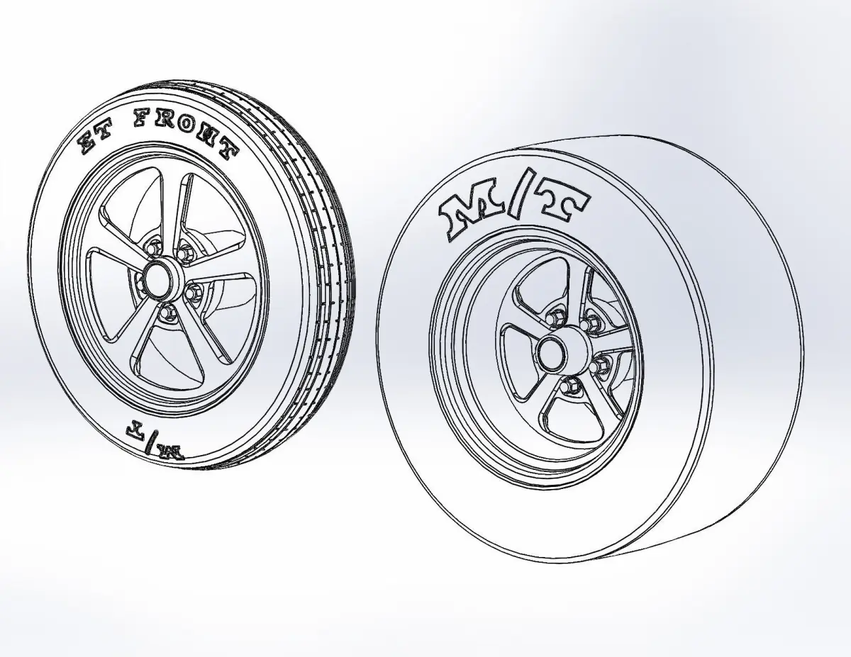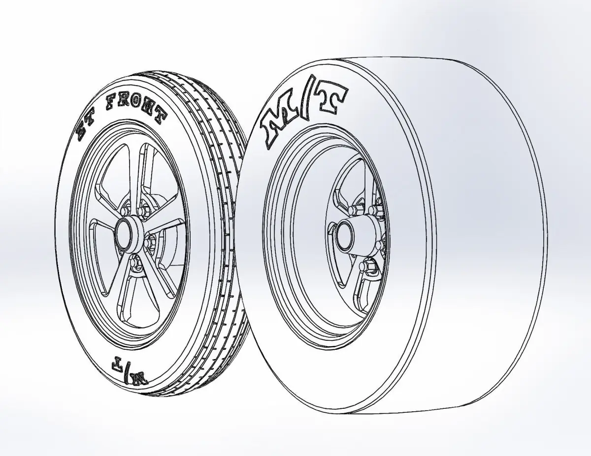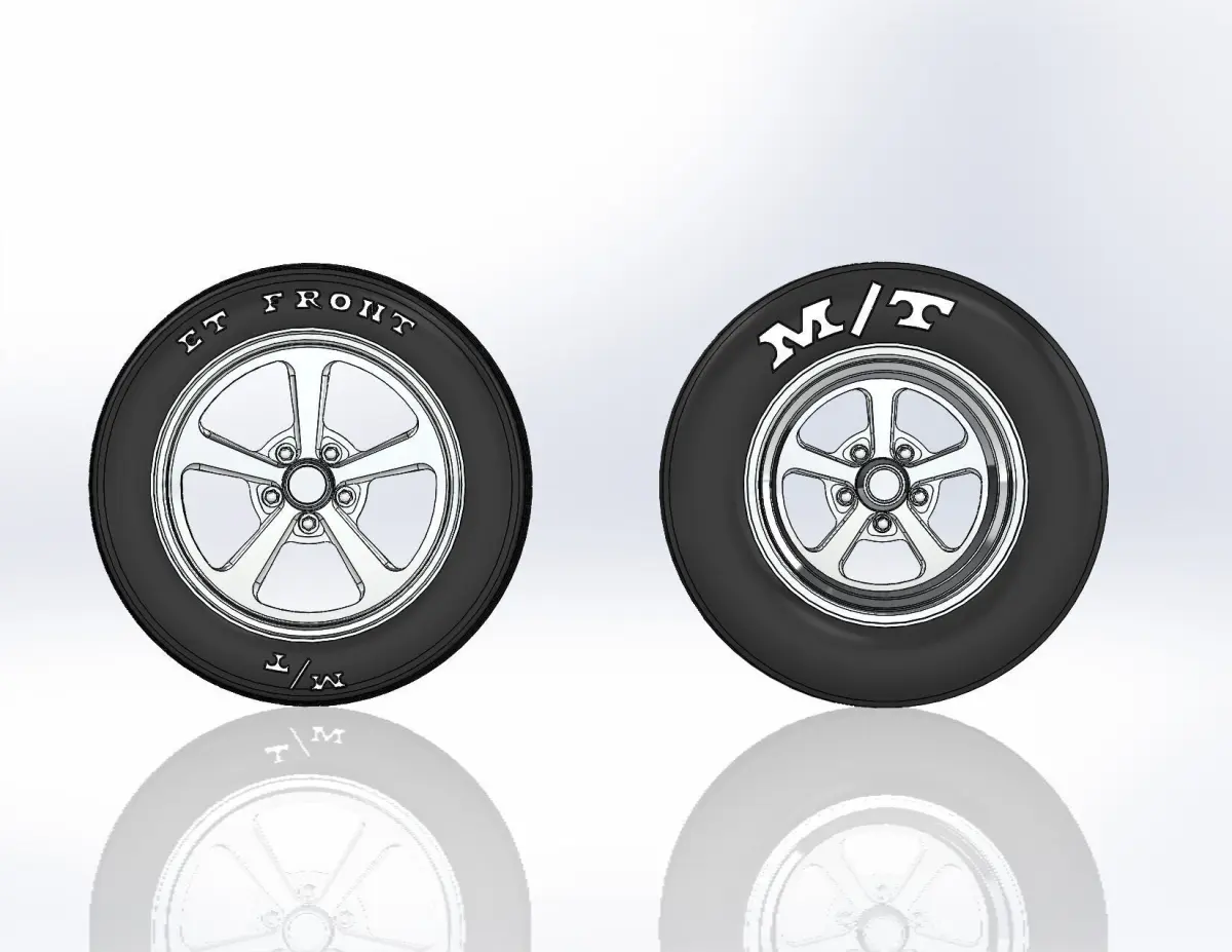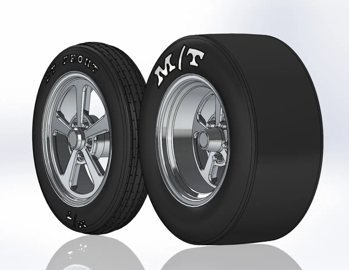 3D-printable wheels for scale model, rims and tyres separately . Rims: Billet Specialties - Dominator: rear 15x10, front 17x4.5; Tyres: rear 26/10-15, front 26/4-17