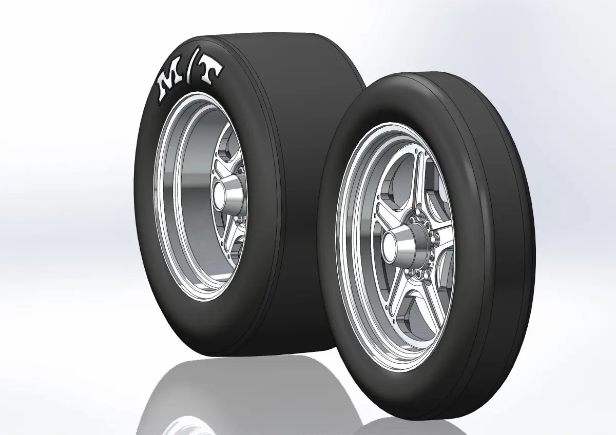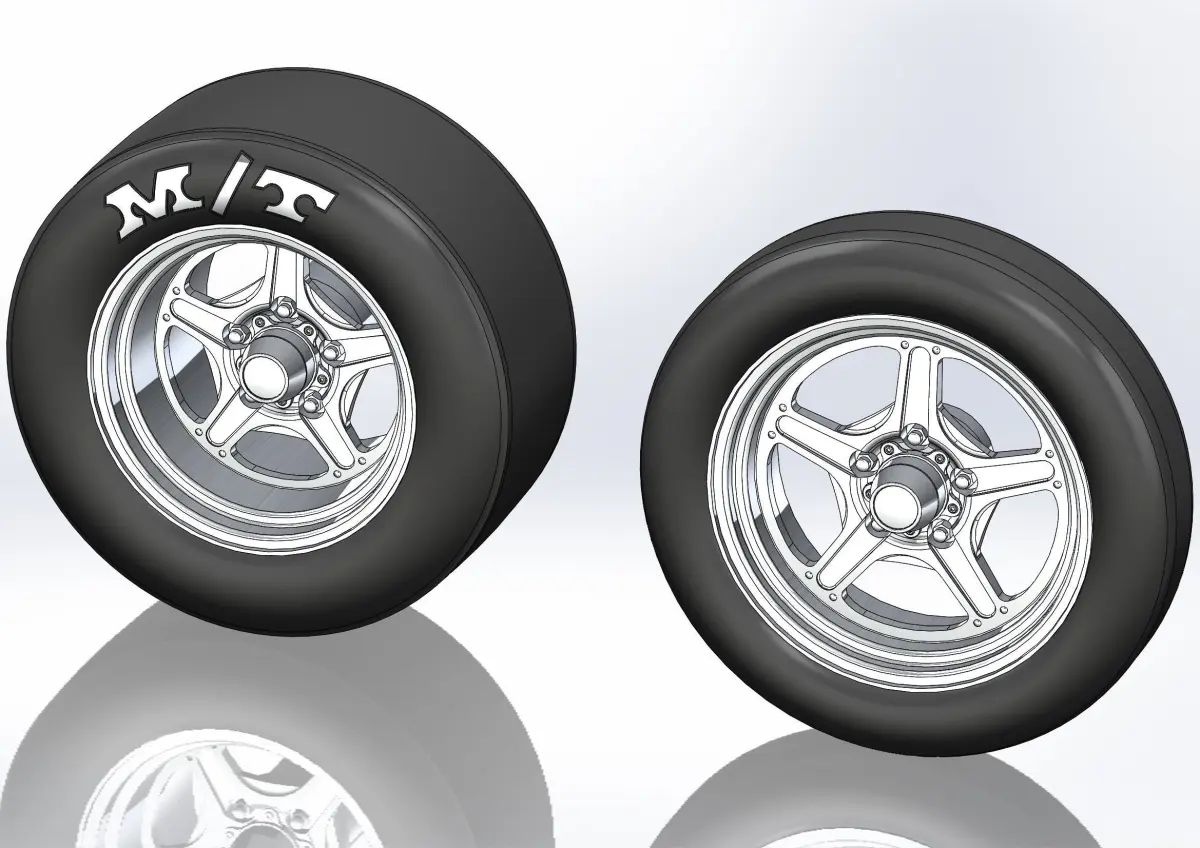 3D-printable wheels (rims and tyres separately) for your scale or RC-model. Rims - Billet Specialties Street Lite : rear 15x9, front 17x4; Tyres: rear 25/9.5-15, front 26/4,5-17