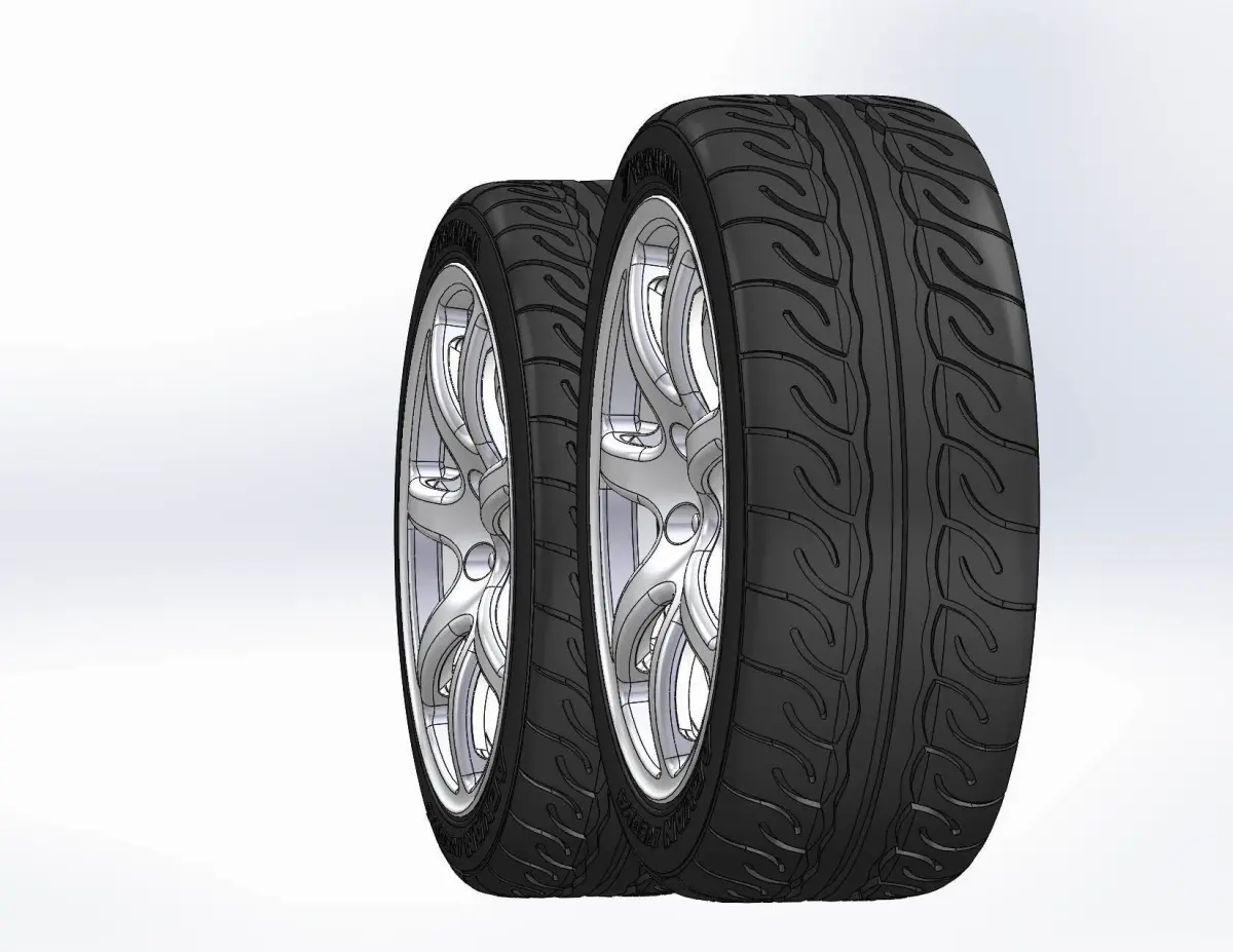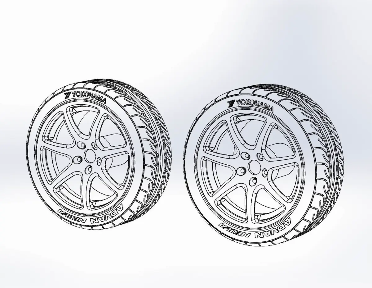 3D-printable wheels (rims and tyres separately and as one body) for your scale- or RC model. Rims style - OEM - TVR Tuscan/T400/T350/Sagaris/Tamora, front 18x8, rear 18x8.5; Tyres - front 225/40 R18, rear 245/40 R18 with a detailed tire tread pattern
