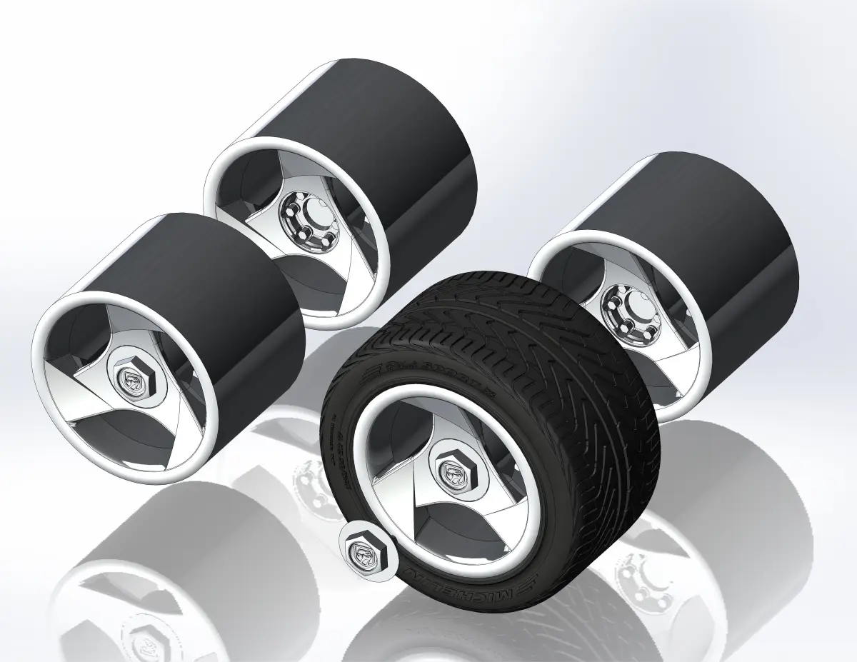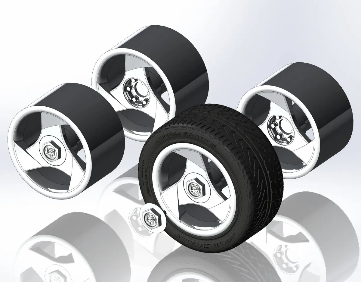 3D-printable wheels (rims, tyres and decorative caps - separately) for your scale- or RC model .