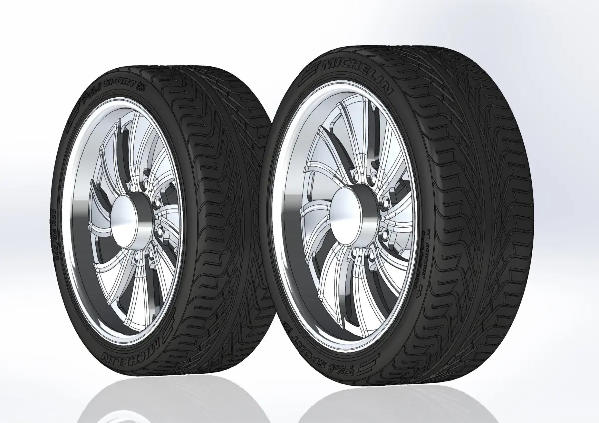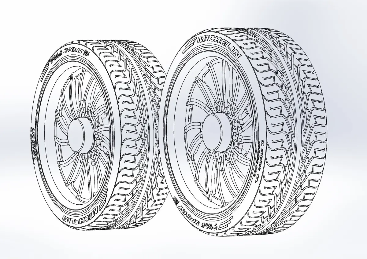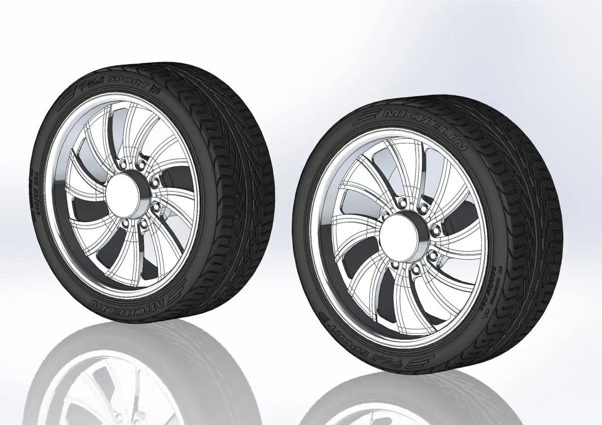 3D-printable wheels (rims and tyres separately) for your scale or RC model. Rims style - Intro Wheels Twisted Vista HD8, 20x8.5; Tyres - 245/35 R20 with a detailed tread pattern