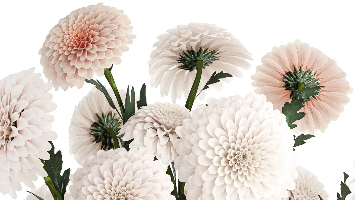Set of white bouquets of flowers Chrysanthemum Dahlias