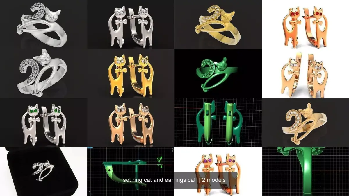 jewelry 3D modeling, creative design, cam/cad, rapid prototiping, rendering, animation luxury vintage-earrings with stonescat-ring miss-kitti 213