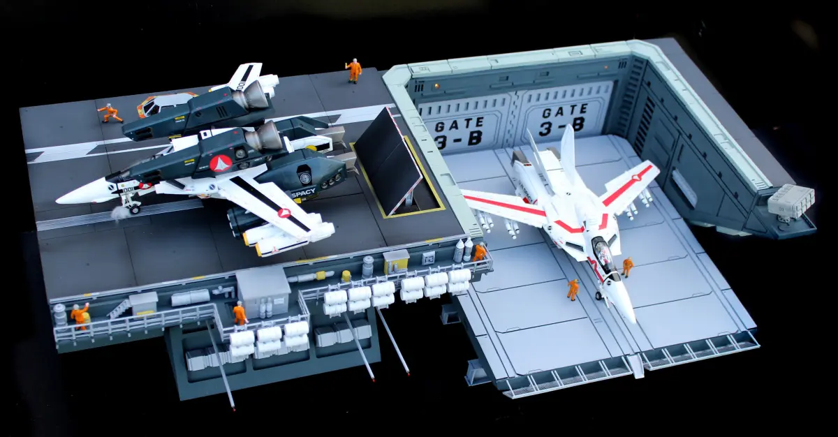 This iconic model is straight from the Macross intro. Modelled using the series intro as reference and using real air plane carrier parts for the under side and left side flight deck. This kit consists of 181 for the hangar elevator and 161 parts for the left Flight Deck that need to be 3D printed.