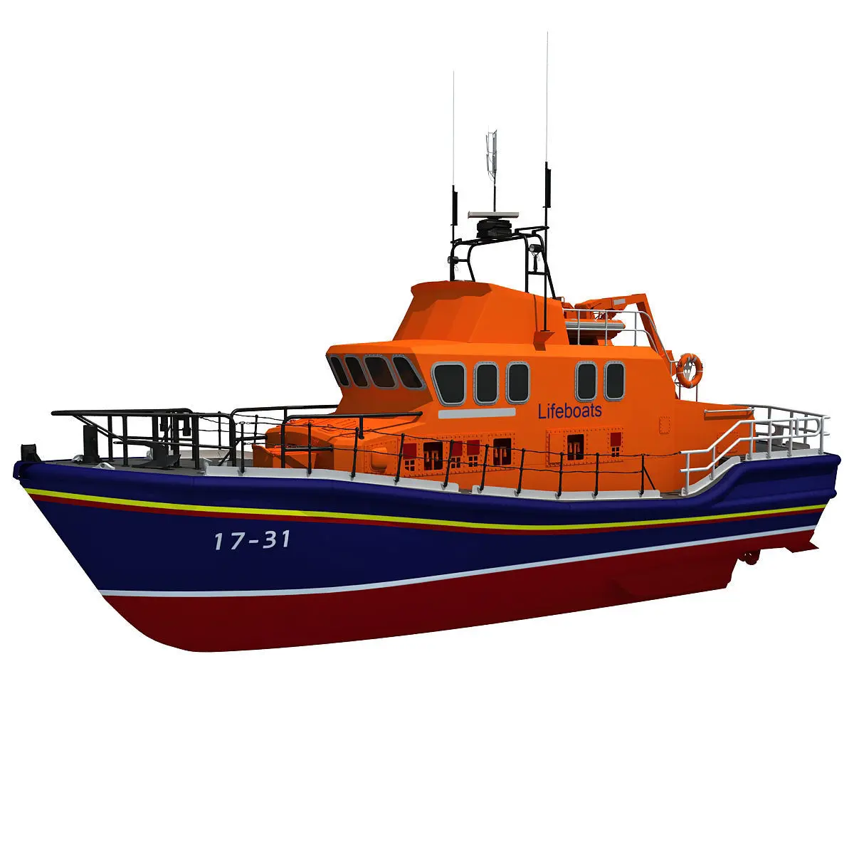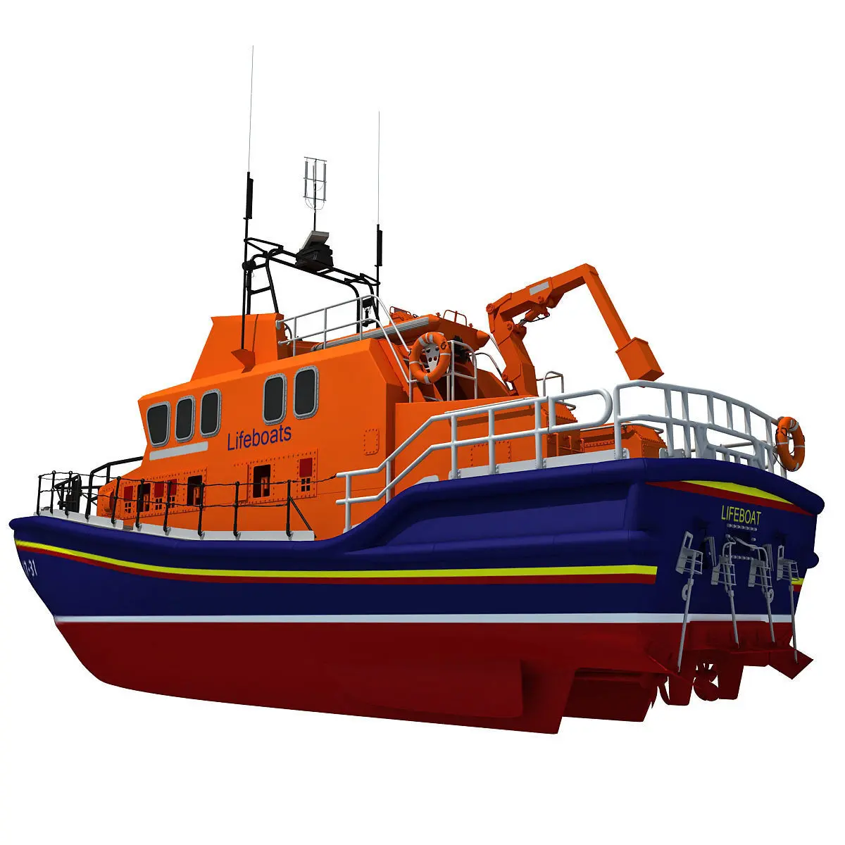 High detailed 3d model of Severn class lifeboat.Model is high resolution and perfect for close-up detailed renders.Photoshop (PSD) file included for ease of editing texture, 4096 x 4096 pixels.HDRI map not included.Previews were rendered with V-Ray.