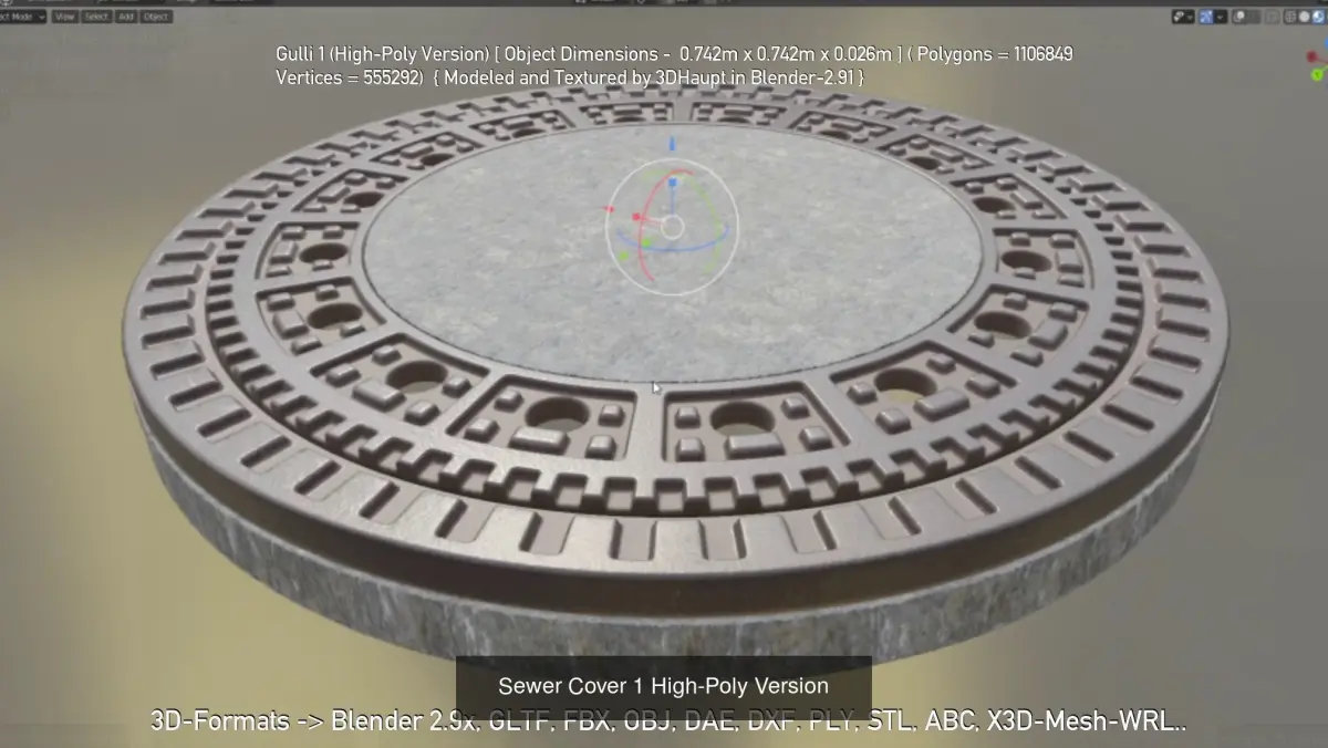 BLEND (Blender, filesize: 2.6 GB), OBJ (OBJ, filesize: 2.56 GB), FBX (Autodesk FBX, filesize: 2.56 GB), GLTF (glTF, filesize: 2.56 GB), ABC (Alembic, filesize: 2.56 GB), DAE (Collada, filesize: 2.56 GB), STL (Stereolithography, filesize: 2.56 GB), DXF (DXF, filesize: 1.26 GB), TEXTURES (Textures, filesize: 1.26 GB), PNG (PNG, filesize: 1.26 GB), JPG (JPG, filesize: 1.26 GB), PLY (Ply, filesize: 1.26 GB)