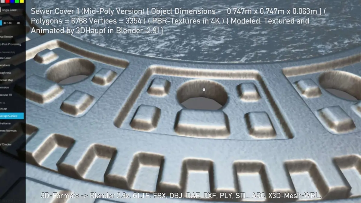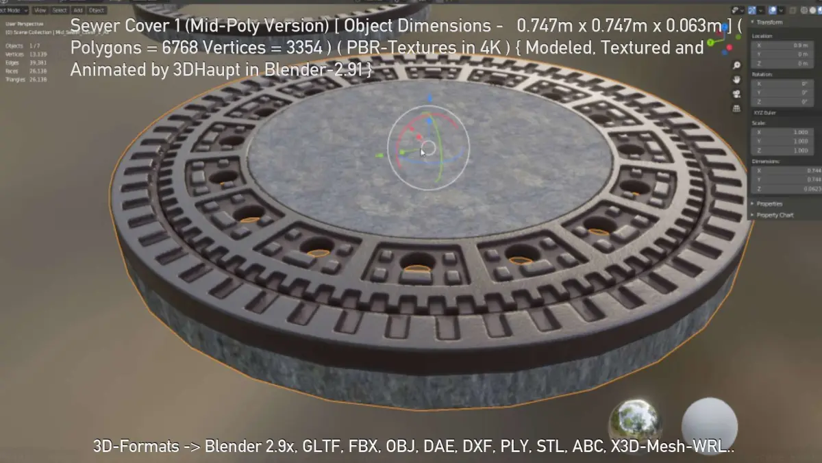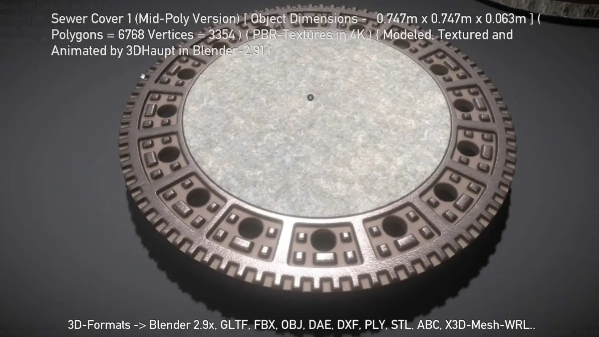 Here is the pbr textured mid-poly version of sewer cover 1.