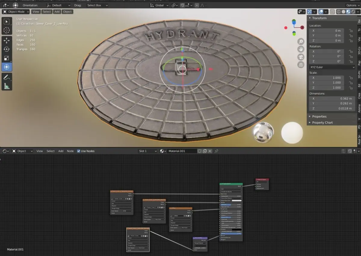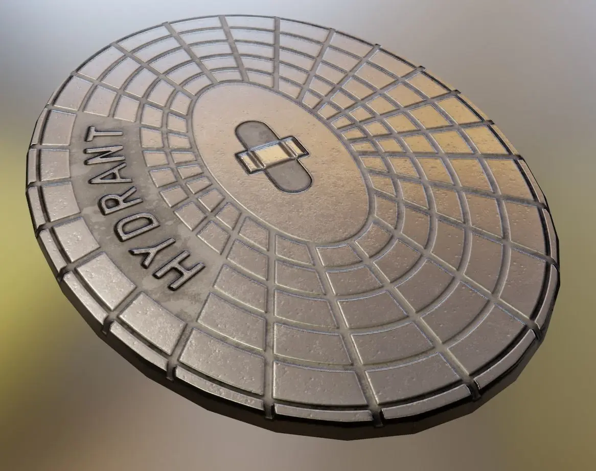 Here is the pbr-textured low-poly version of sewer cover 2.